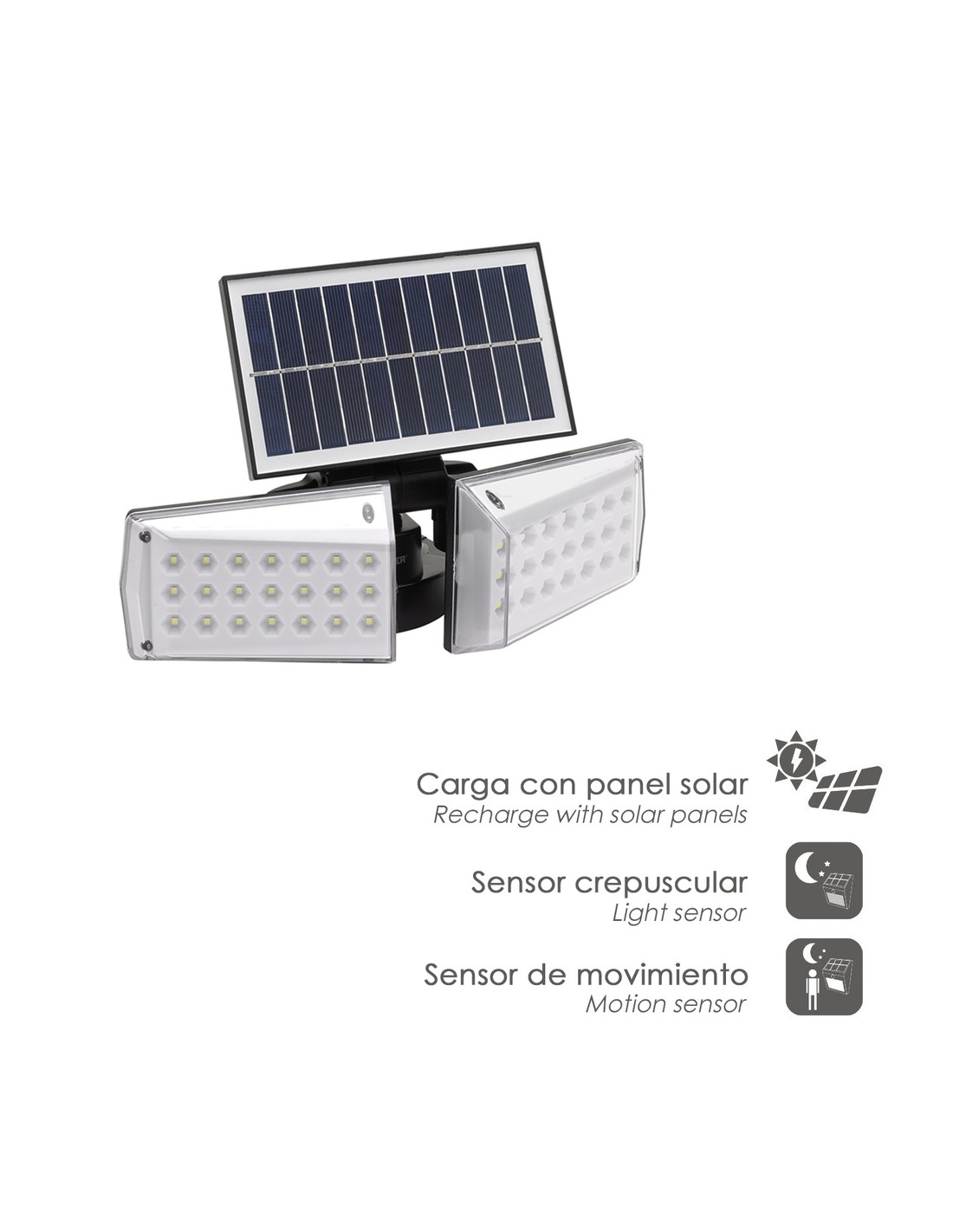 Aplique Solar Led Doble Con Sensor de Movimiento / Crepuscular 450 Lumenes. Protección IP65