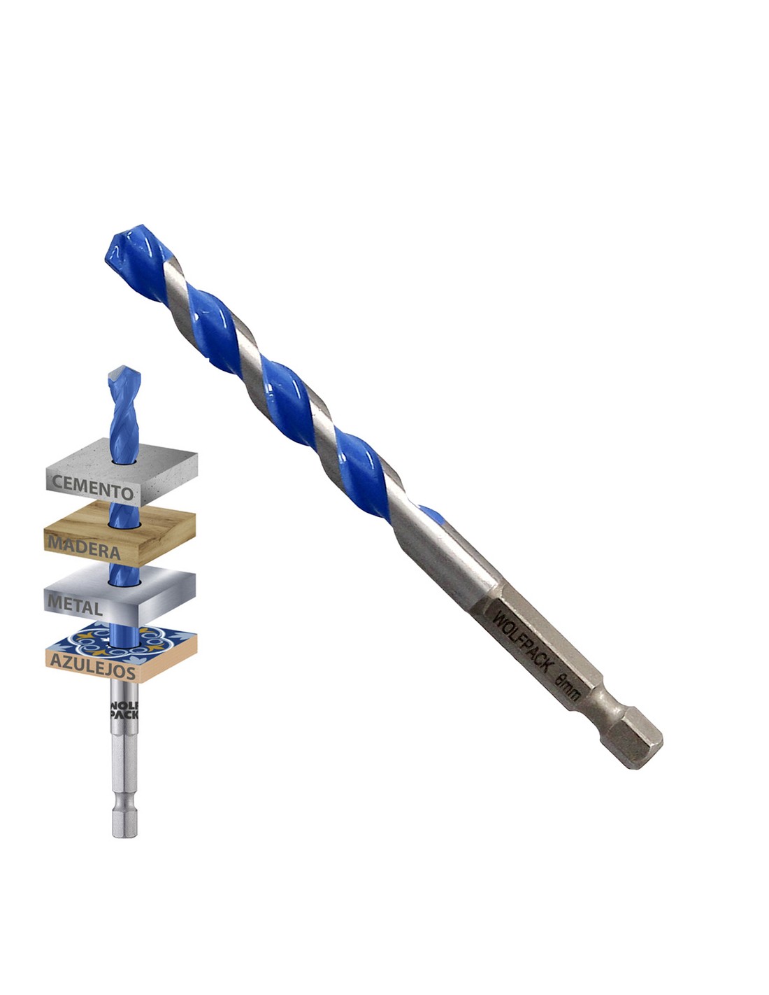- Apta para la perforación de azulejos, cerámica, mármol, hormigón, metal, madera y plástico.