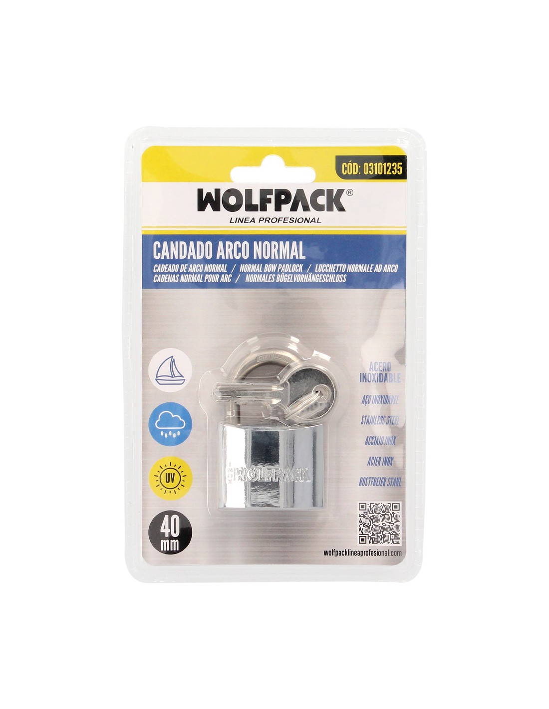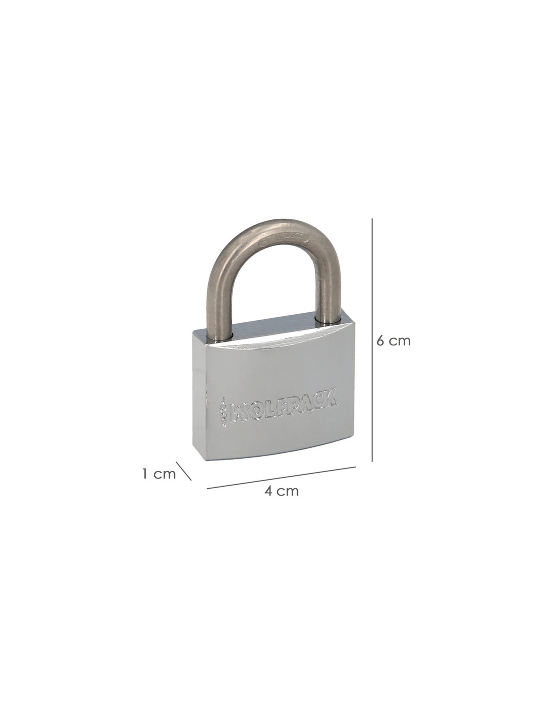 Candado inoxidable. - Arco normal. - Medida: 40 mm. - Realizado en acero inoxidable. - Doble cierre. - Incluye 2 llaves. - La llave se puede copiar con la IS-1D