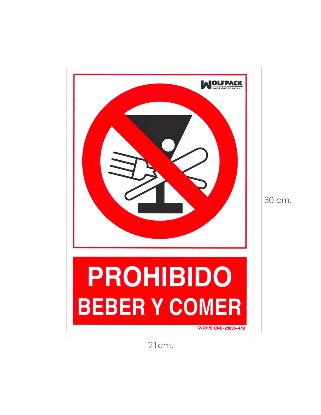 Cartel prohibido comer y beber - Medida: 30 x 21 cm. - Fabricado bajo norma UNE 23035/4. - Realizado en plastico. - Articulo también conocido como: carteles, rotulos, señales.
