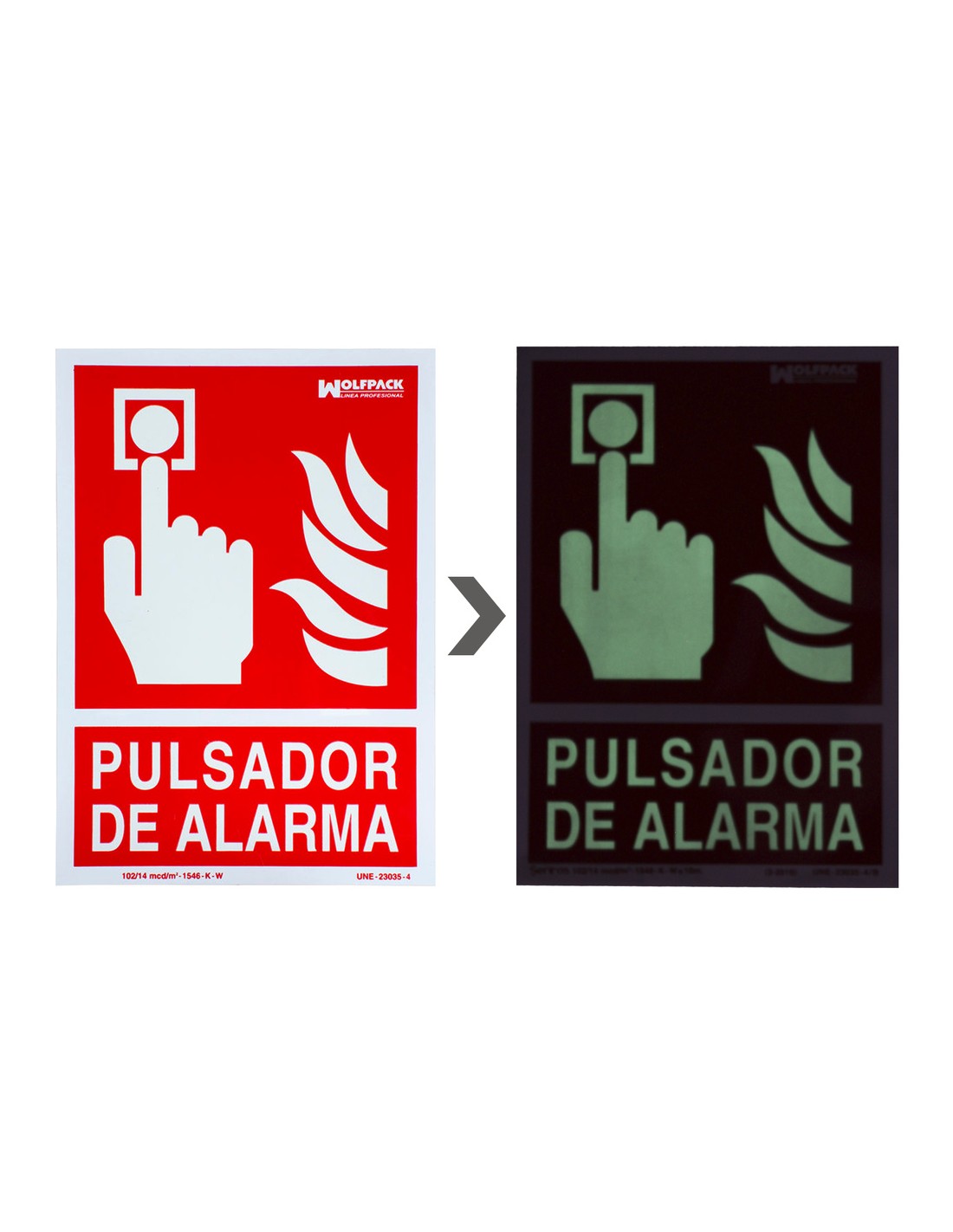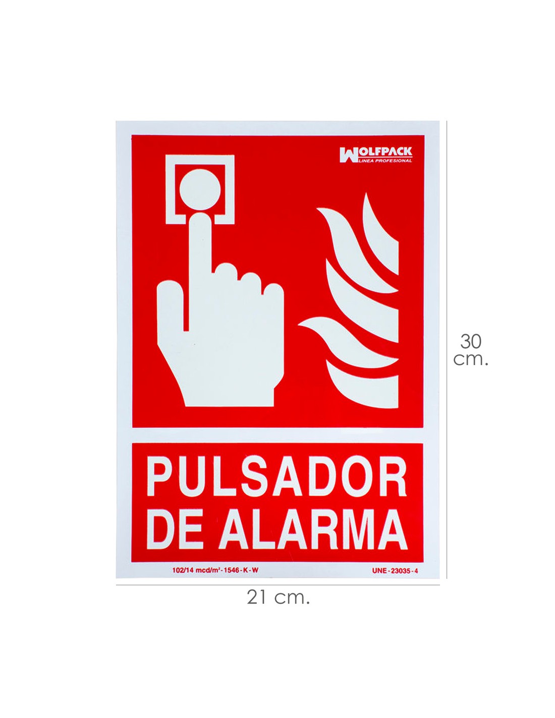 Cartel Pulsador Alarma. - Medida: 30 x 21 cm. - Cartel / señal fluorescente en la oscuridad. - Fabricado bajo norma UNE 23035/4. - Realizado en plastico. - Articulo también conocido como: carteles, rotulos, señales.