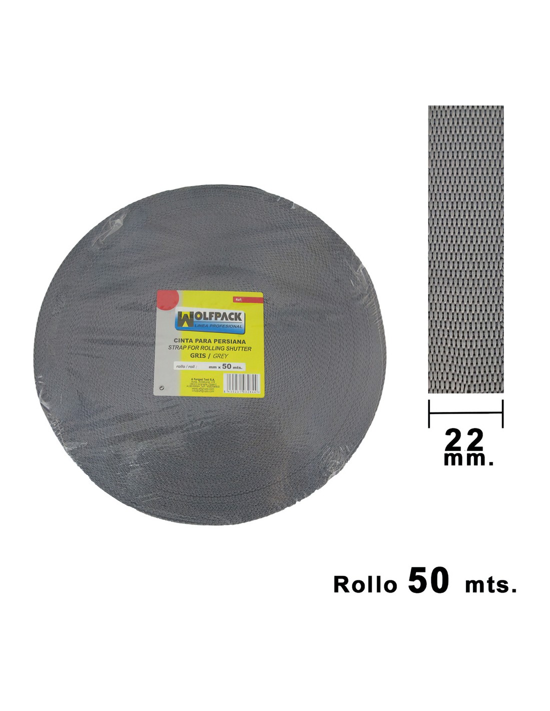 Cinta Persiana Wolfpack Gris 22 mm. Rollo 50 metros