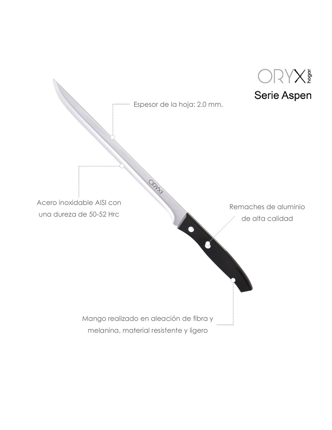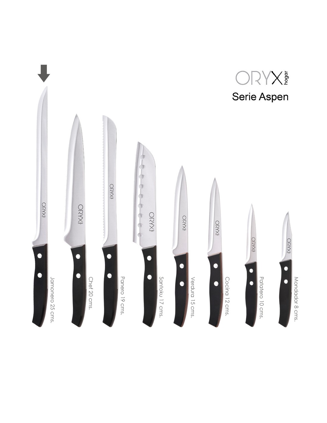 - La serie Aspen destaca por el equilibrio de sus cuchillos teniendo el centro de gravedad idoneo, usando estos cuchillos te sentiras comodo para realizar los mejores cortes.