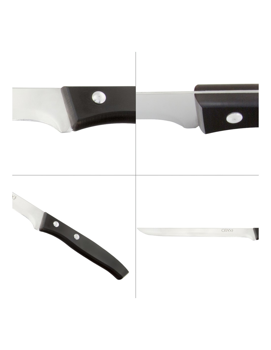 - Hoja realizada en acero inoxidable aisi con una dureza de 50-52 hrc y un acabado pulido espejo brillo.