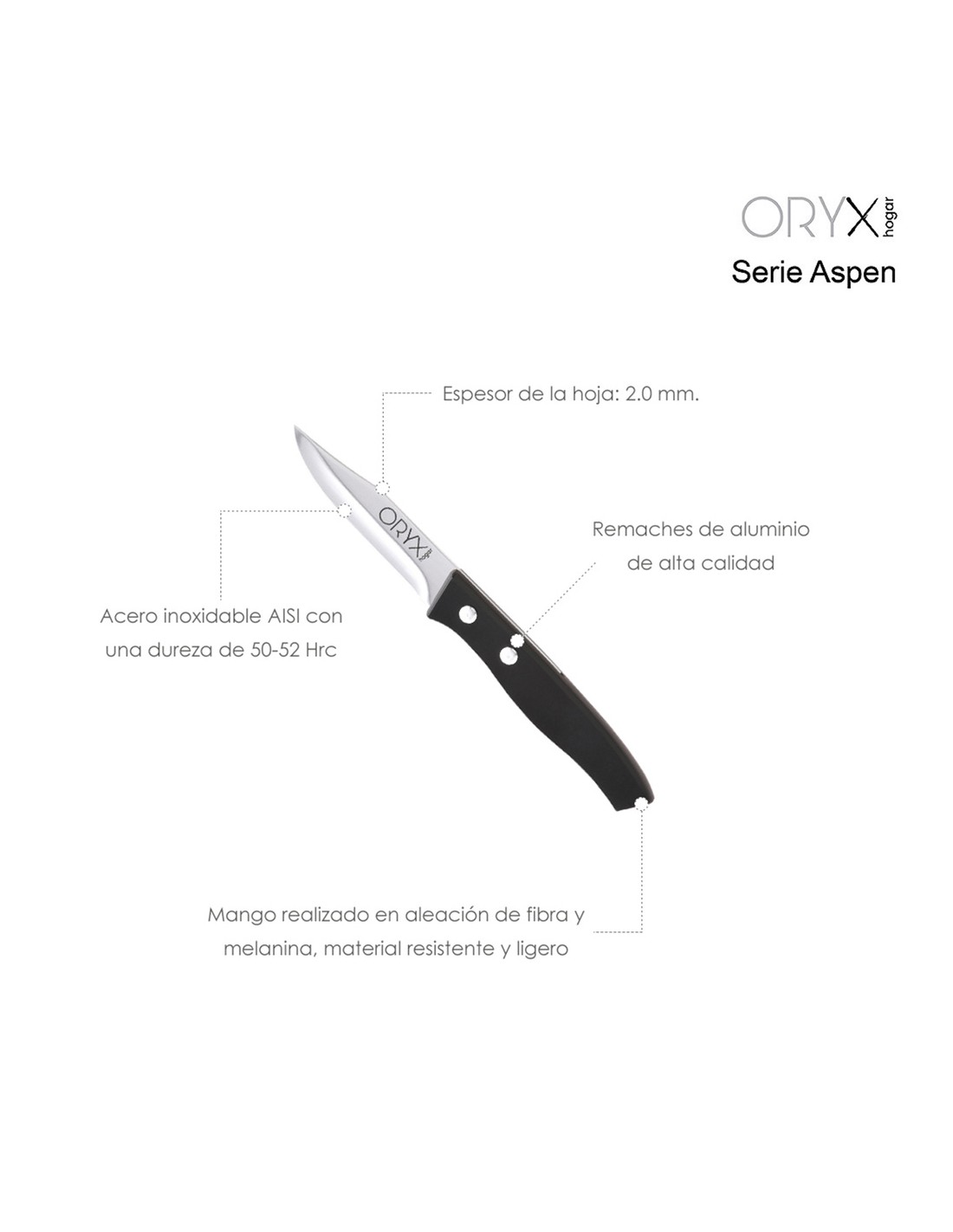 Cuchillo Aspen Mondador Hoja Acero Inoxidable 8 cm. Negro