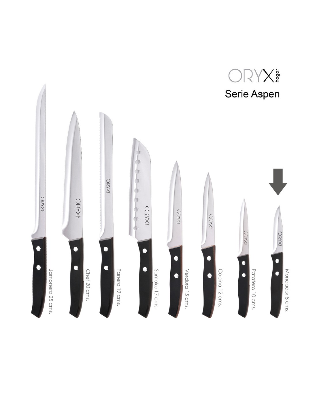- La serie Aspen destaca por el equilibrio de sus cuchillos teniendo el centro de gravedad idoneo, usando estos cuchillos te sentiras comodo para realizar los mejores cortes.