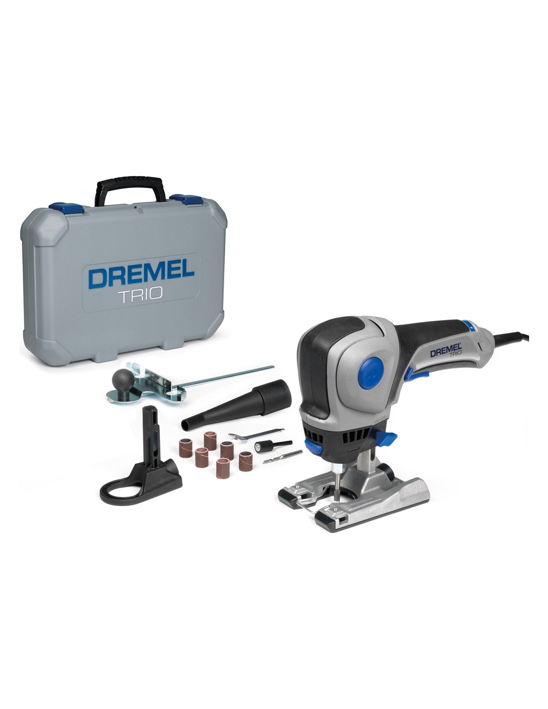 La Dremel TRIO es lo último en herramientas para todo aquel que realice trabajos manuales generales en el hogar. La Dremel TRIO tiene un sistema en espiral 3 en 1 que permite cortar, lijar y fresar con una misma herramienta. Esta herramienta versátil, compacta y ligera es muy potente. La Dremel TRIO ofrece una excelente ergonomía e incorpora una empuñadura para trabajar en dos posiciones y una función de velocidad variable, lo que garantiza un ritmo de trabajo óptimo en distintos materiales. Con su tecnología de corte en espiral de 360° y su capacidad de corte de inmersión, la herramienta hace cortes rápidos y a mano alzada en madera, plástico, pladur, metal y azulejos. Además, hay también complementos y accesorios específicos TRIO para lijar y fresar, por lo que esta herramienta le permitirá realizar su proyecto de principio a fin. Sistema rotativo Dremel Trio 3 en 1: cortar, lijar y fresar.