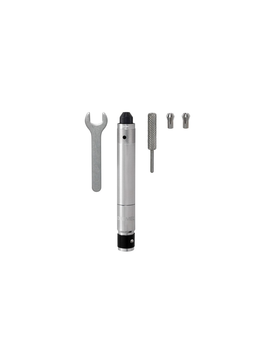 Empuñadura más pequeña para Dremel Fortiflex. Consta de 1 empuñadura, una boquilla de 2,4 mm y 3,2 mm, una llave de tuercas y una llave inglesa.