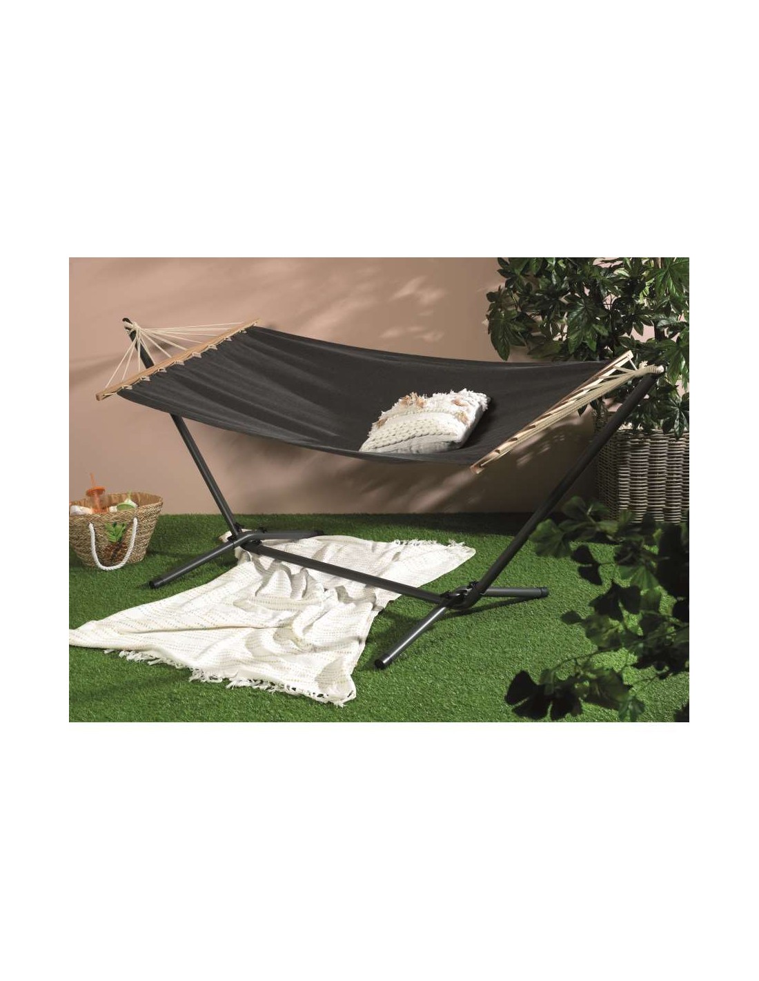 hamaca fsc100% con barra de madera de abedul. color: gris.
