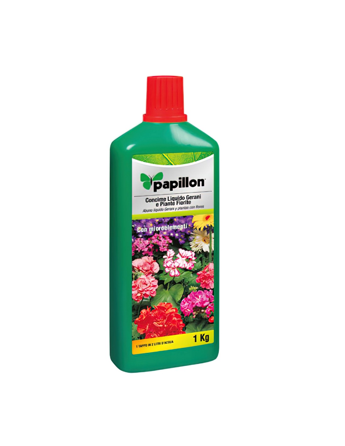 Abono liquido papillon geranios y flores 1kg - Ideal para trabajos de jardinería. - Nutriente específico para geranios y para todas las plantas. - El uso de una amplia gama de micro-elementos impide deficiencias peligrosas.