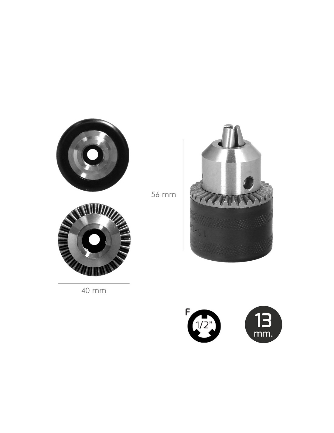 - El rango de sujeción es de Ø 1,5 a 13 mm, lo que lo hace versátil para distintos tipos de brocas.