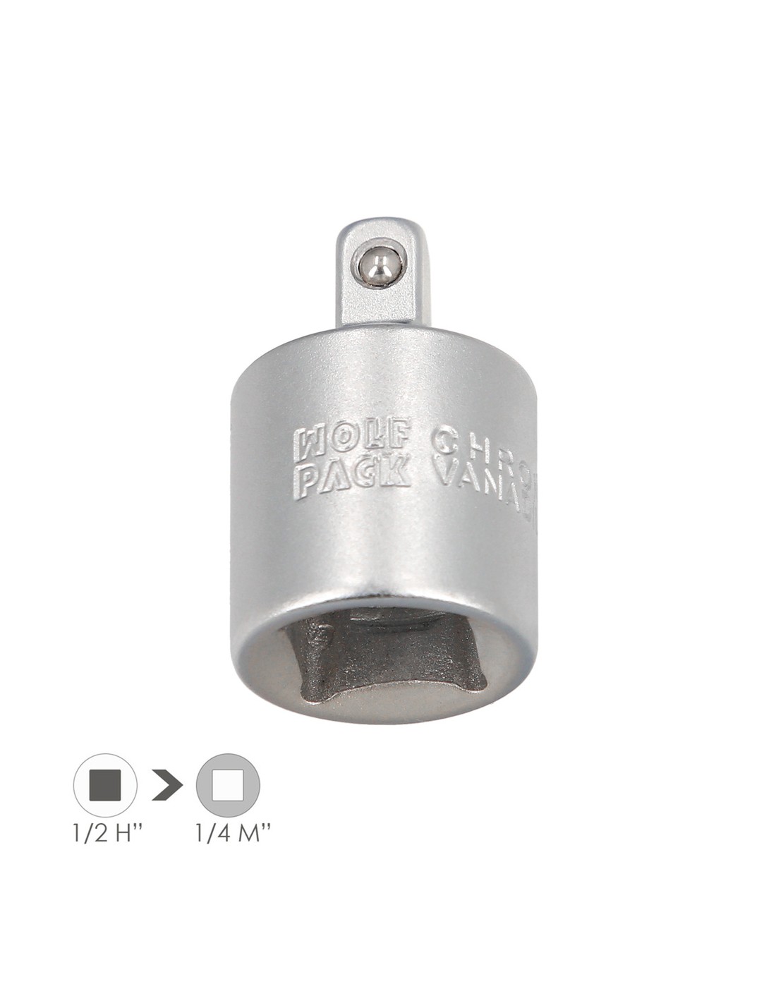 Adaptador Reductor 1/2" Hembra A 1/4" Macho. Acero Cromo Vanadio, Aristas Redondas, Reductor Carraca,
