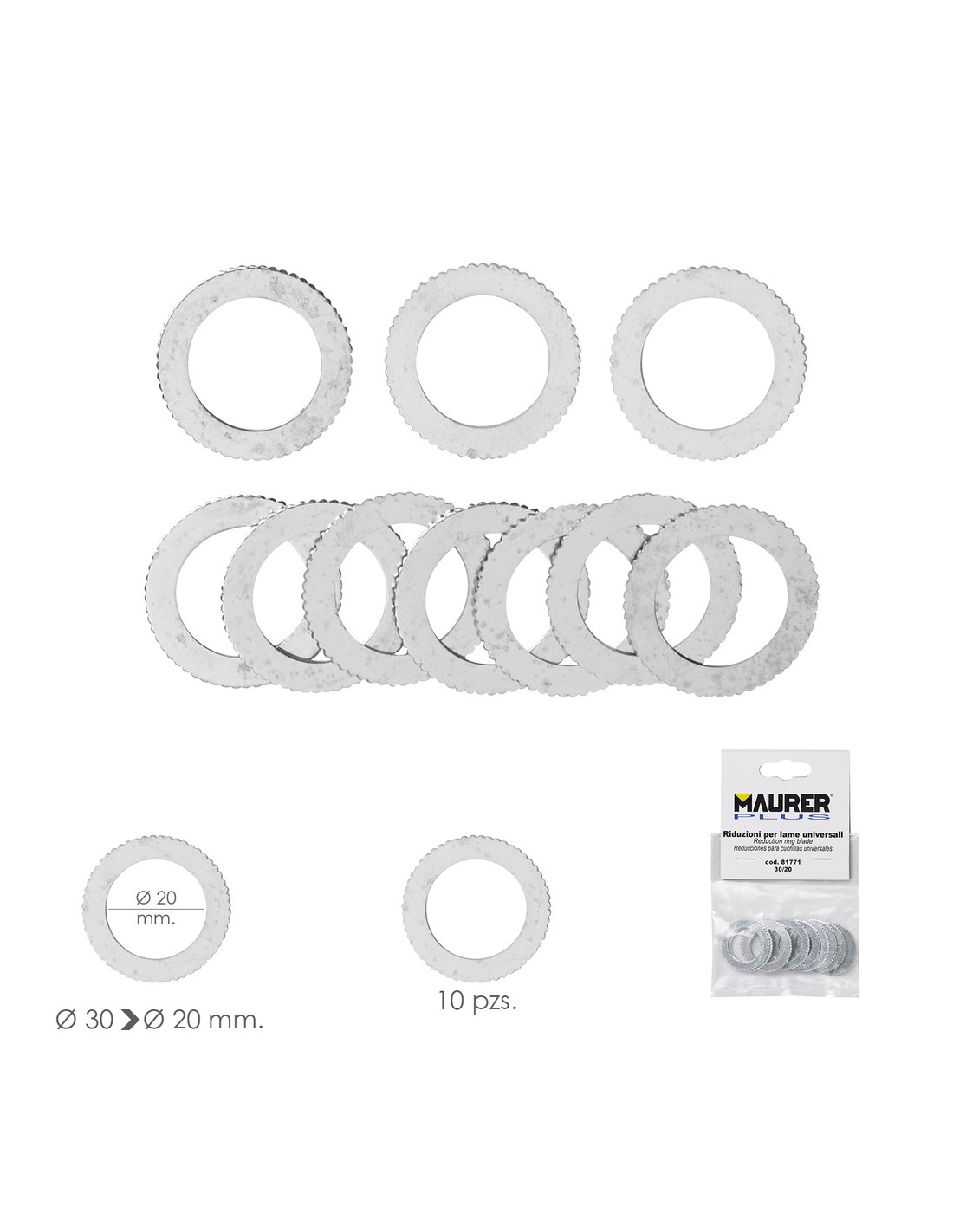 Adaptadores / Reductores Disco Corte Madera Ø 30 a Ø 20 mm. (Bolsa 10 piezas)