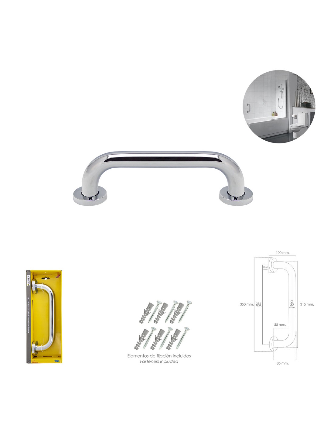 Agarre / Asideo ducha Maurer cromo brillo. - Diámetro x longitud: 32 mm. x 30 cm. - Cromado. - Brillo. - Uso doméstico. - Ideal para colocar en el cuarto de baño, tambien se puede usar con otros accesorios de baño.