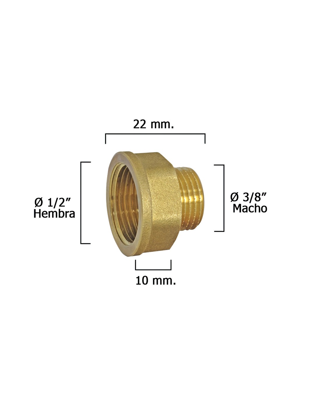 Alargadera Hexagonal Reduccion Pulida 3/8 Macho - 1/2 Hembra x M10