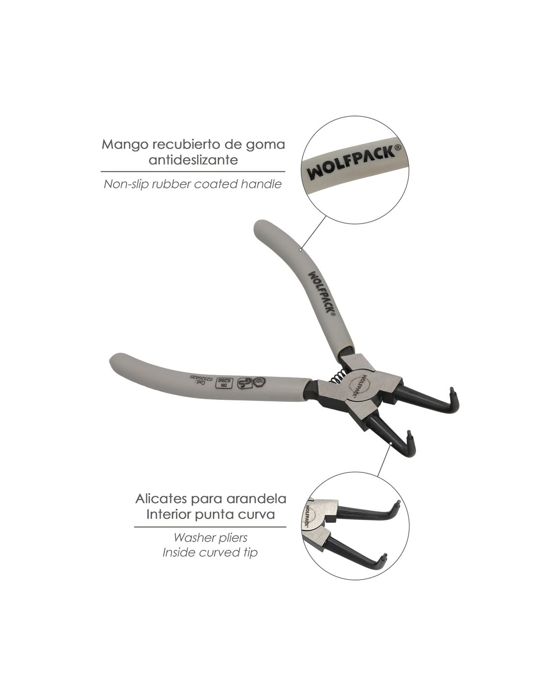 Alicates Arandelas Interiores Curvo 175 mm. Acero Din 5256. Anillos De Presion, Anillos De Retención, Arandelas Circlips