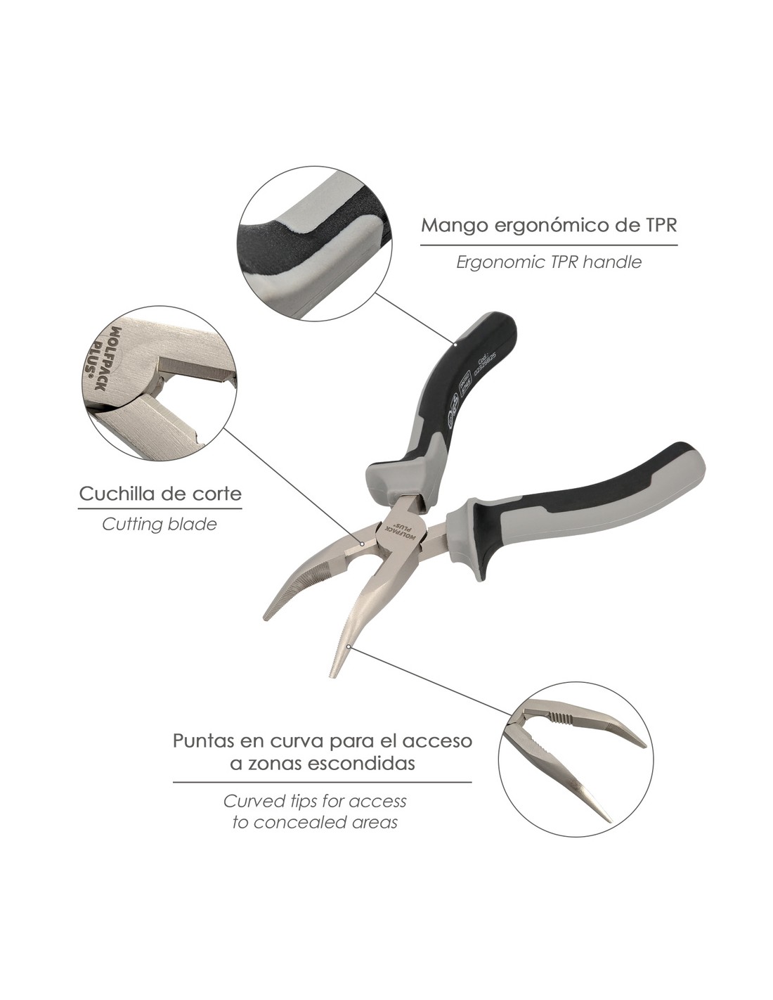Alicates Boca Curva 150 mm. Acero Cromo Vanadio DIN-ISO 5745 Alicates Punta Curva, Alicates Boca Curva Larga,