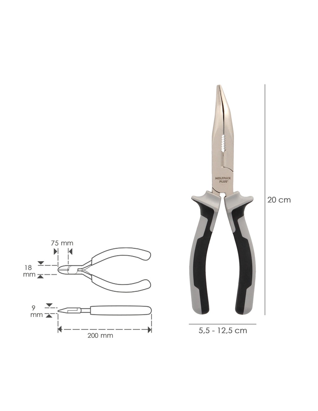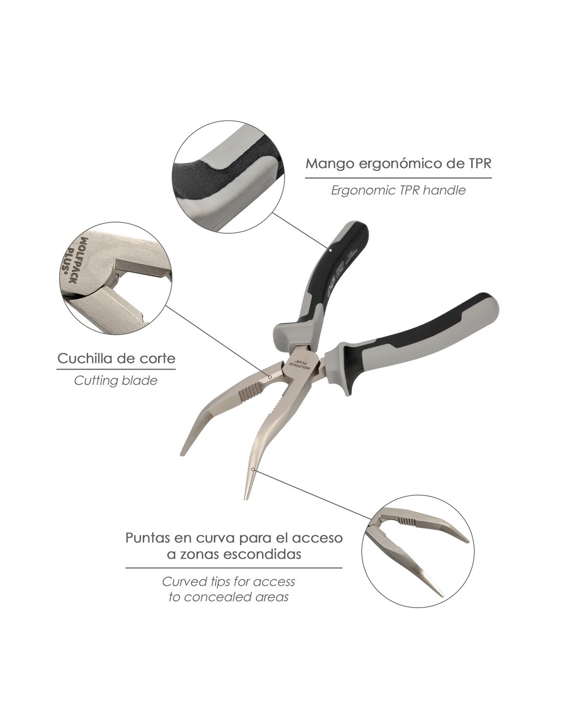 Alicates Boca Curva 200 mm. Acero Cromo Vanadio DIN-ISO 5745 Alicates Punta Curva, Alicates Boca Curva Larga,