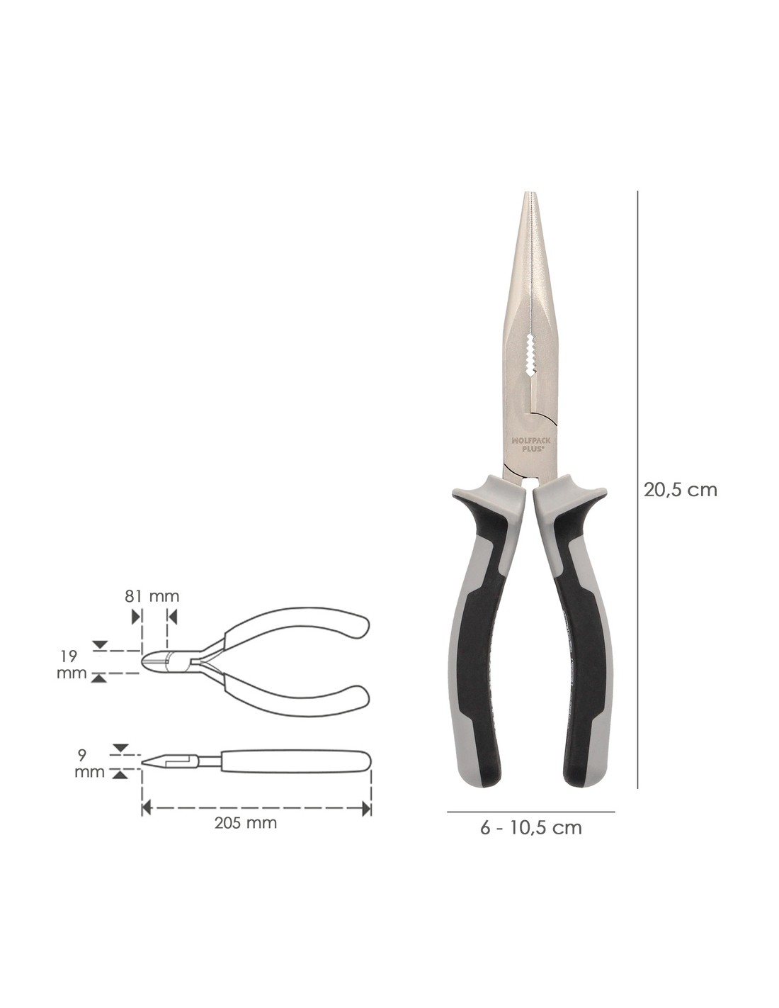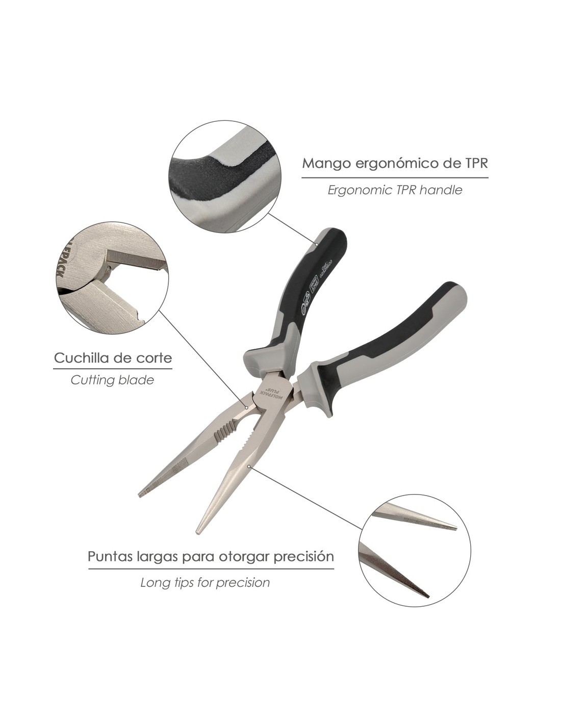 Alicates Boca Recta 200 mm. Acero Cromo Vanadio DIN-ISO 5745 Alicates Punta Recta, Alicates Boca Recta Larga,