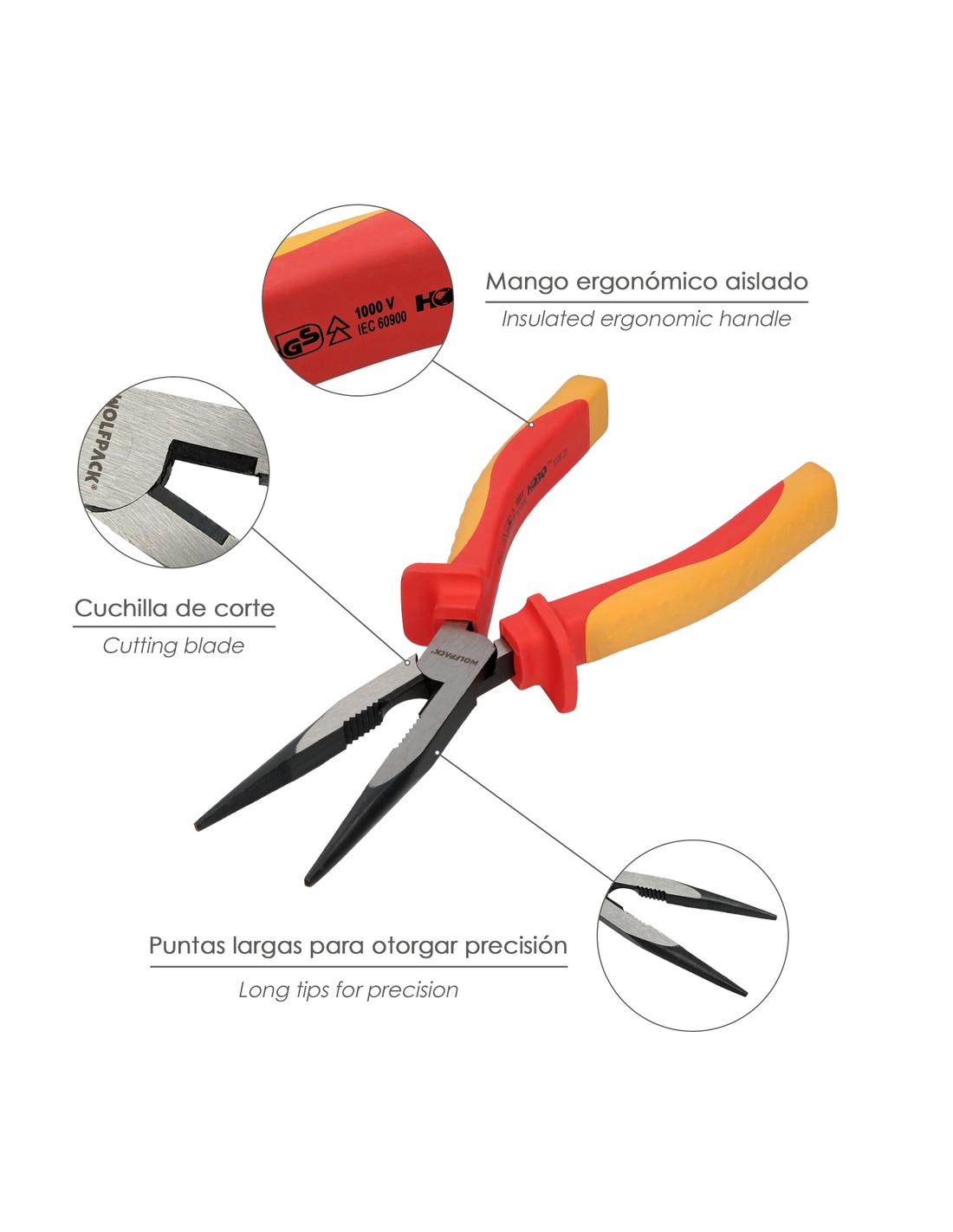 Alicates Boca Recta 200 mm. Mangos Aislados Acero Cromo Vanadio Pelacables, Corta Cables, Pelador Cables