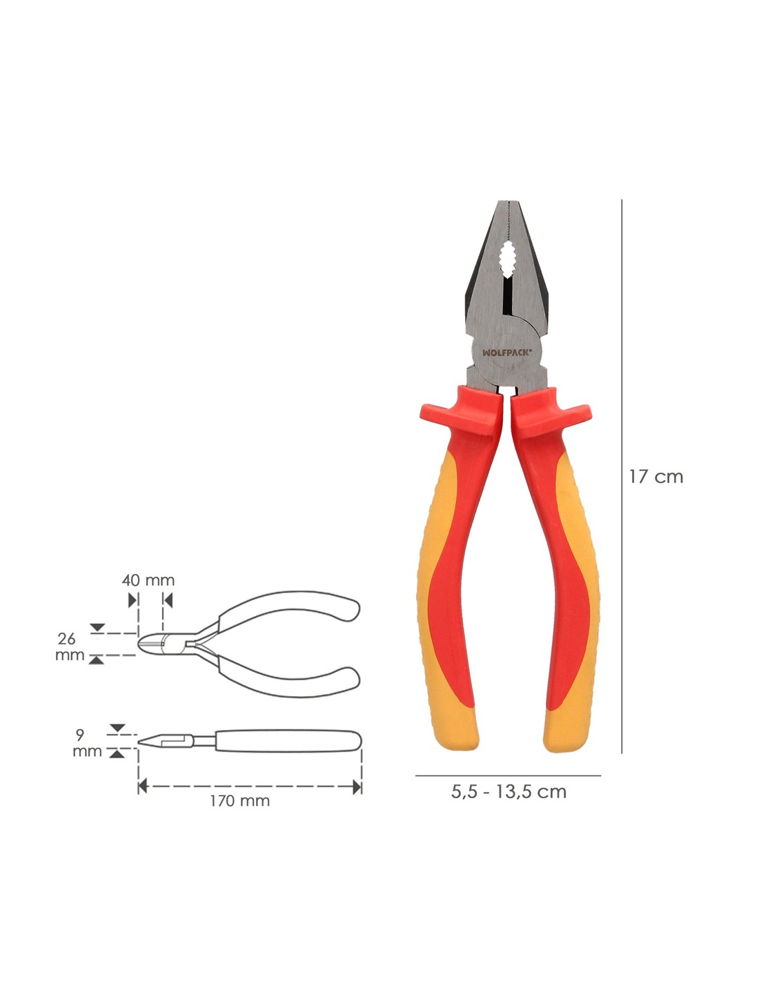 Alicates Universales 150 mm. Mangos Aislados Acero Cromo Vanadio Pelacables, Corta Cables, Pelador Cables