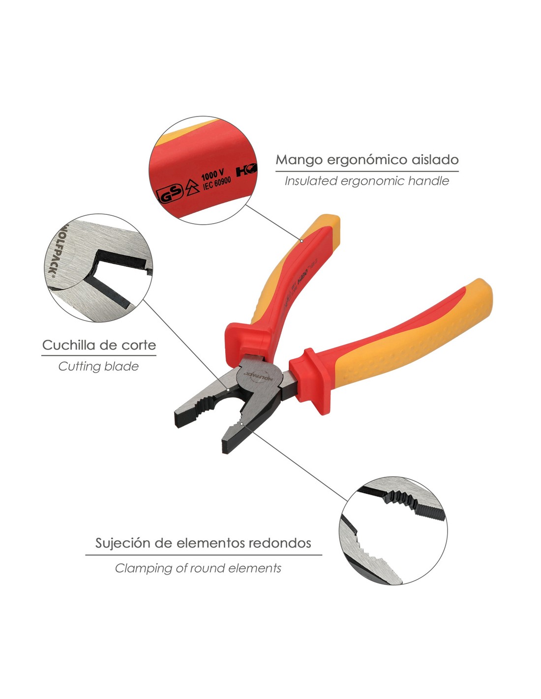 Alicates Universales 200 mm. Mangos Aislados Acero Cromo Vanadio Pelacables, Corta Cables, Pelador Cables