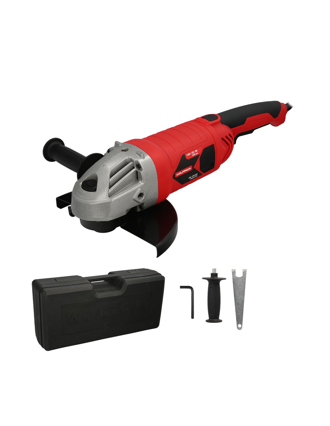 - Accesorios incluidos, empuñadura lateral y llave de apriete del disco, juego de escobillas.