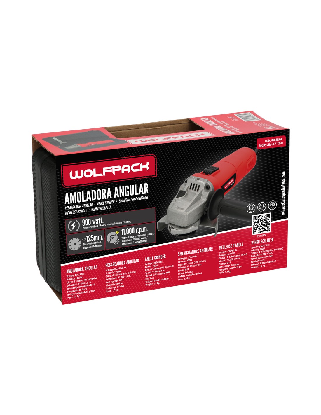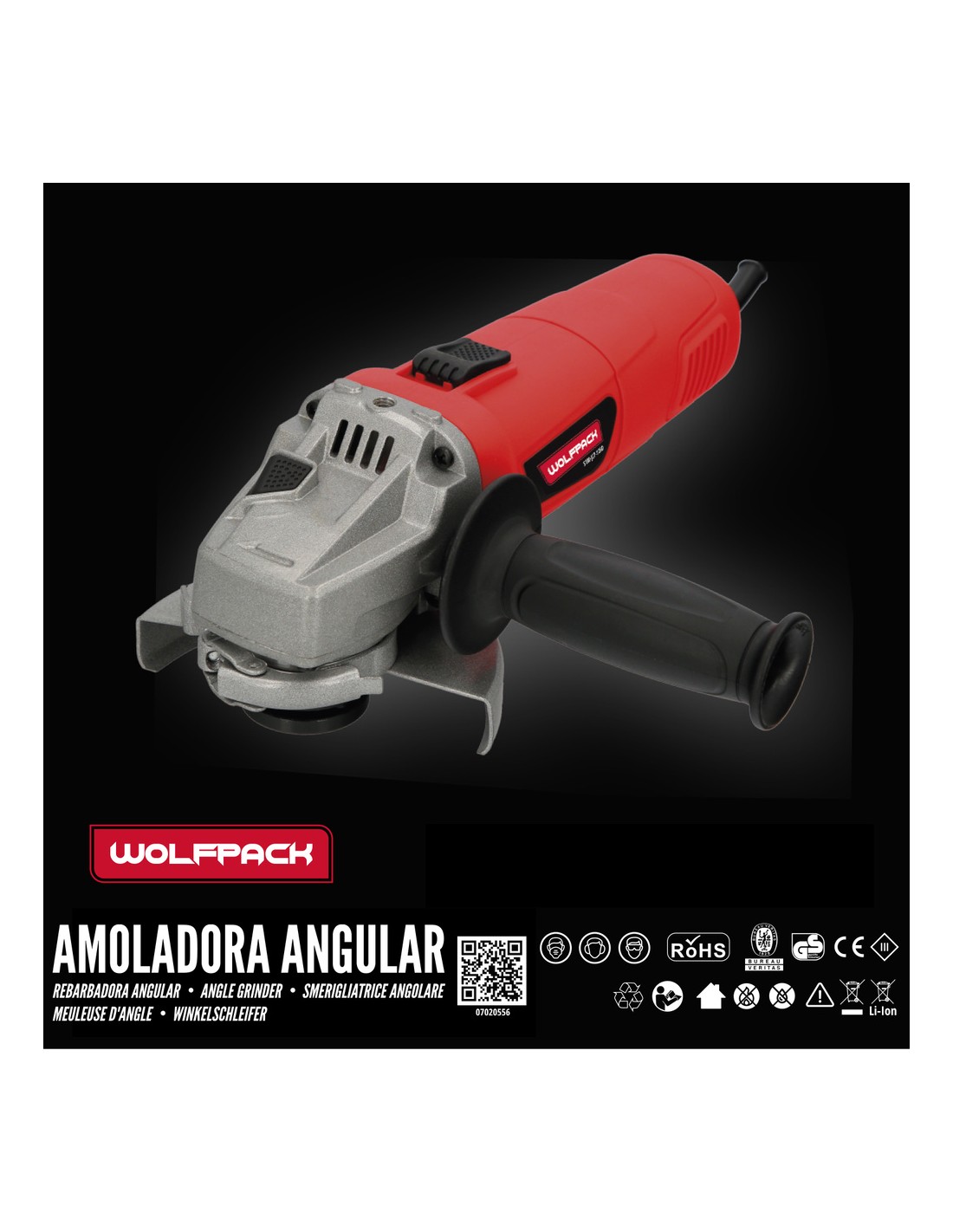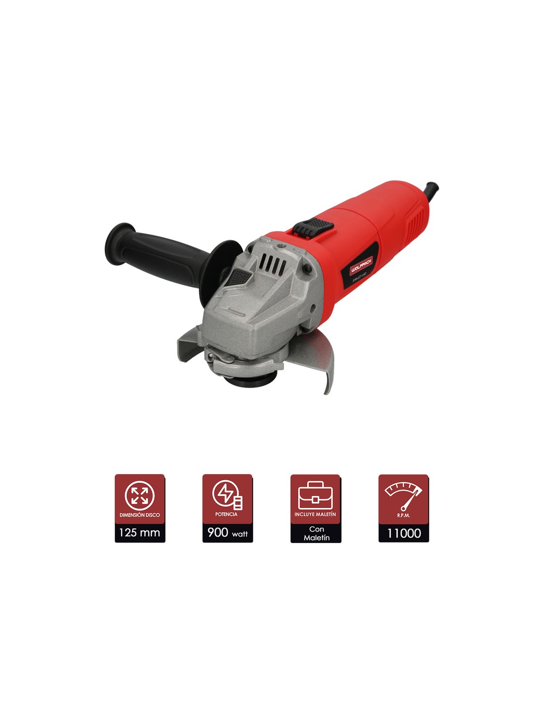Amoladora Angular 900 Watt. Disco Ø 125 mm. 11.000 R.P.M. Mango 3 Posiciones Eje M14 Protector Disco Ajustable, Anti arranque