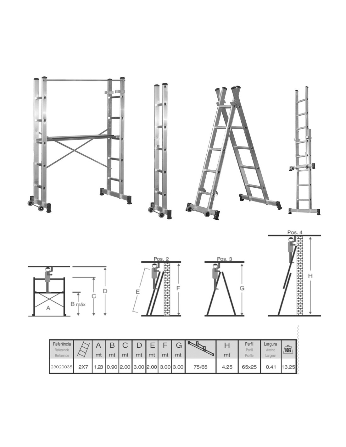 > Modo escalera telescopica: 4.25 metros.
