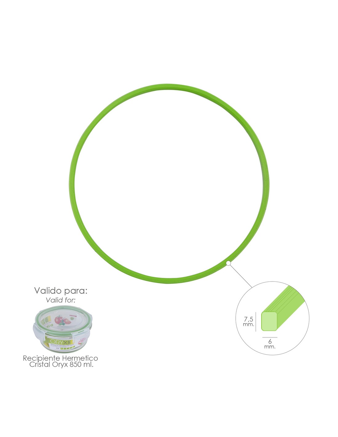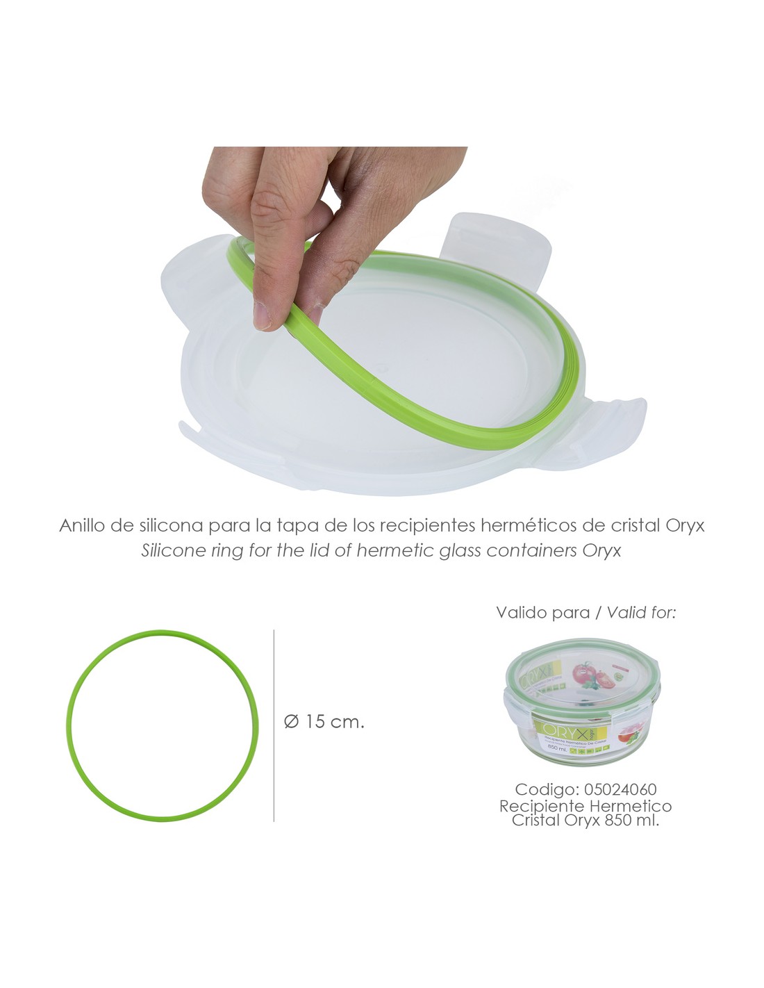 - Valido para Recipiente Hermetico Cristal Redondo 850 ml. Ø 165 x 8 (alt) cm. (Codigo 05024060)