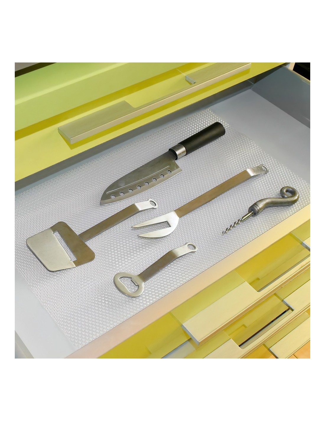 - Amortigüa los ruidos y protege cajones y baldas (lejas) de arañazos.