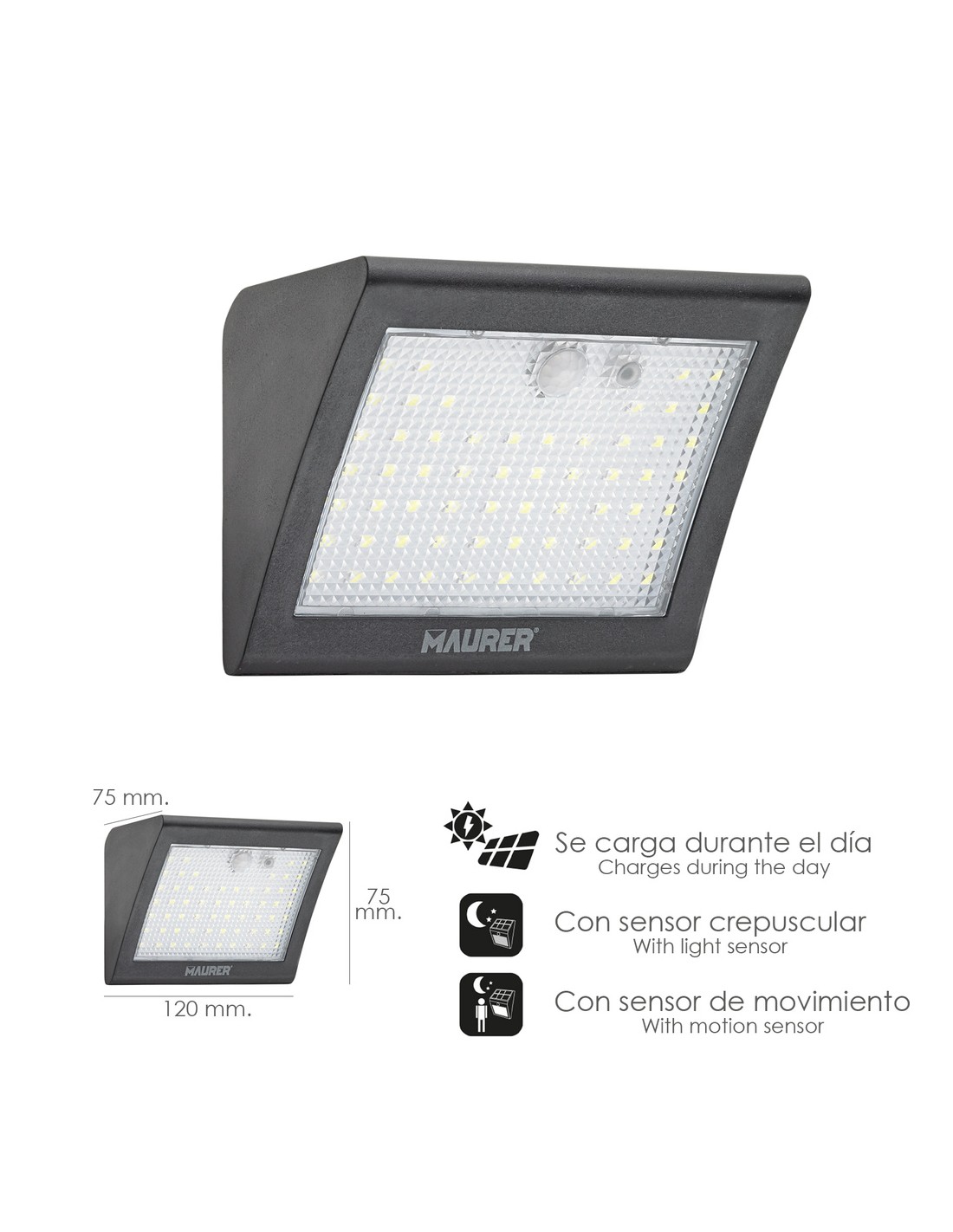 Aplique Solar Led 250 Lumenes Con Sensor De Movimiento y Crepuscular IP65