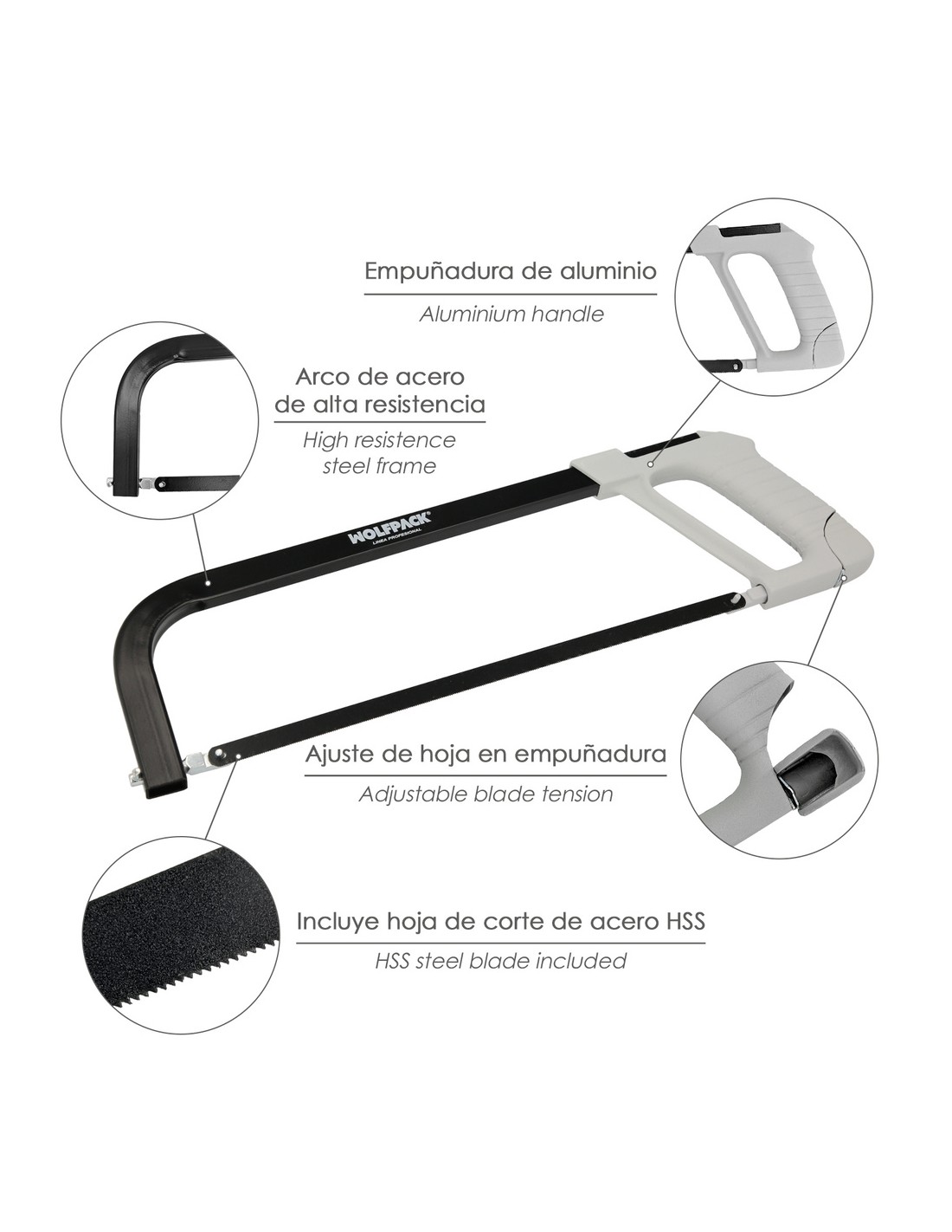 Arco Sierra Acero Con Empuñadura de Aluminio Angulo Corte Ajustable. Corta Acero, Aluminio, Madera, Plastico, Cobre