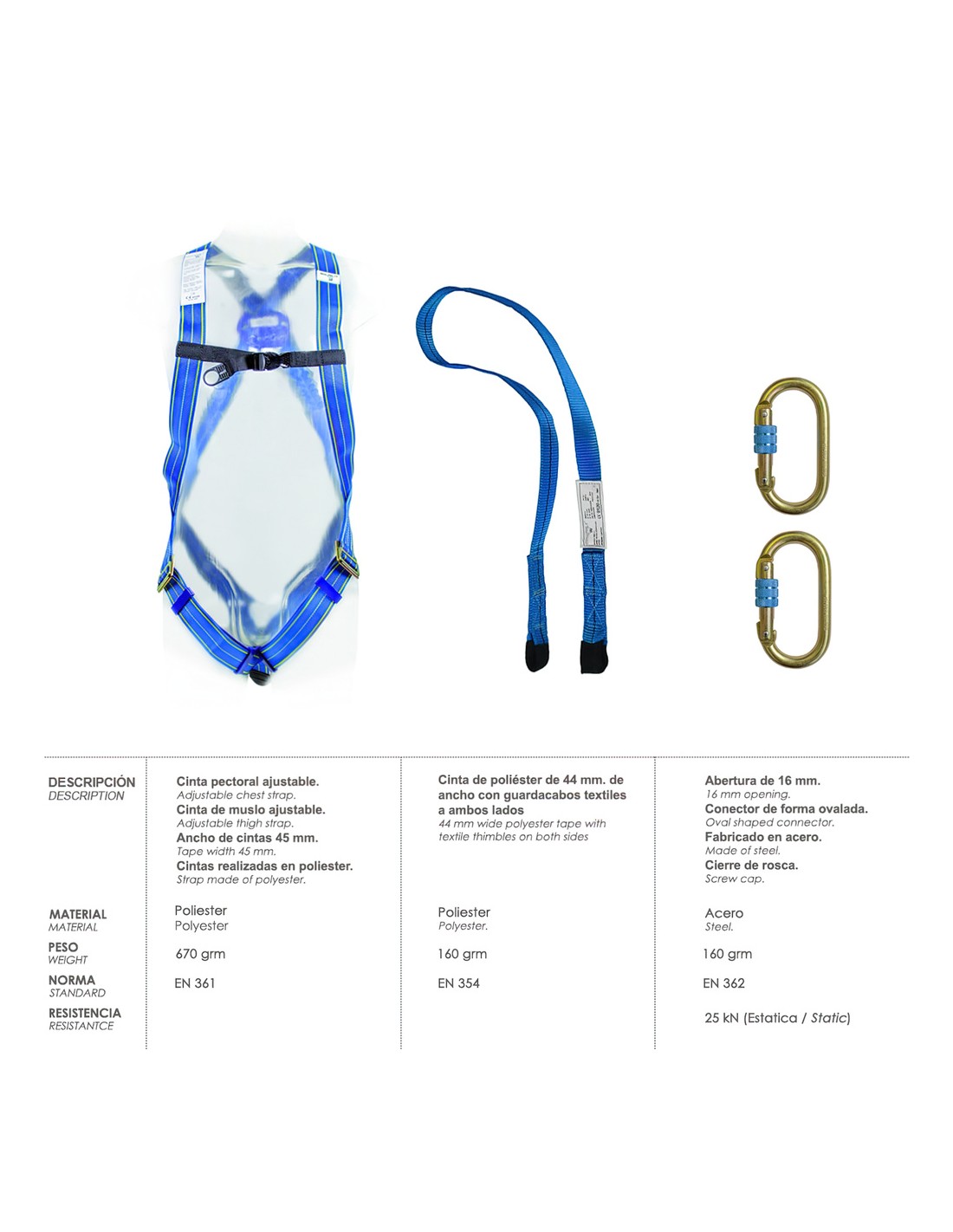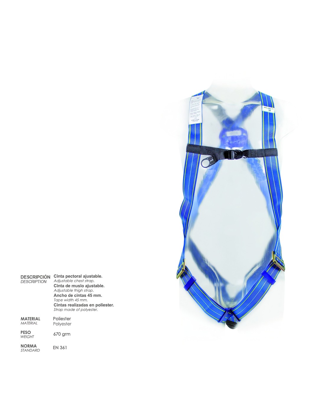 - Fabricado bajo norma: EN361.