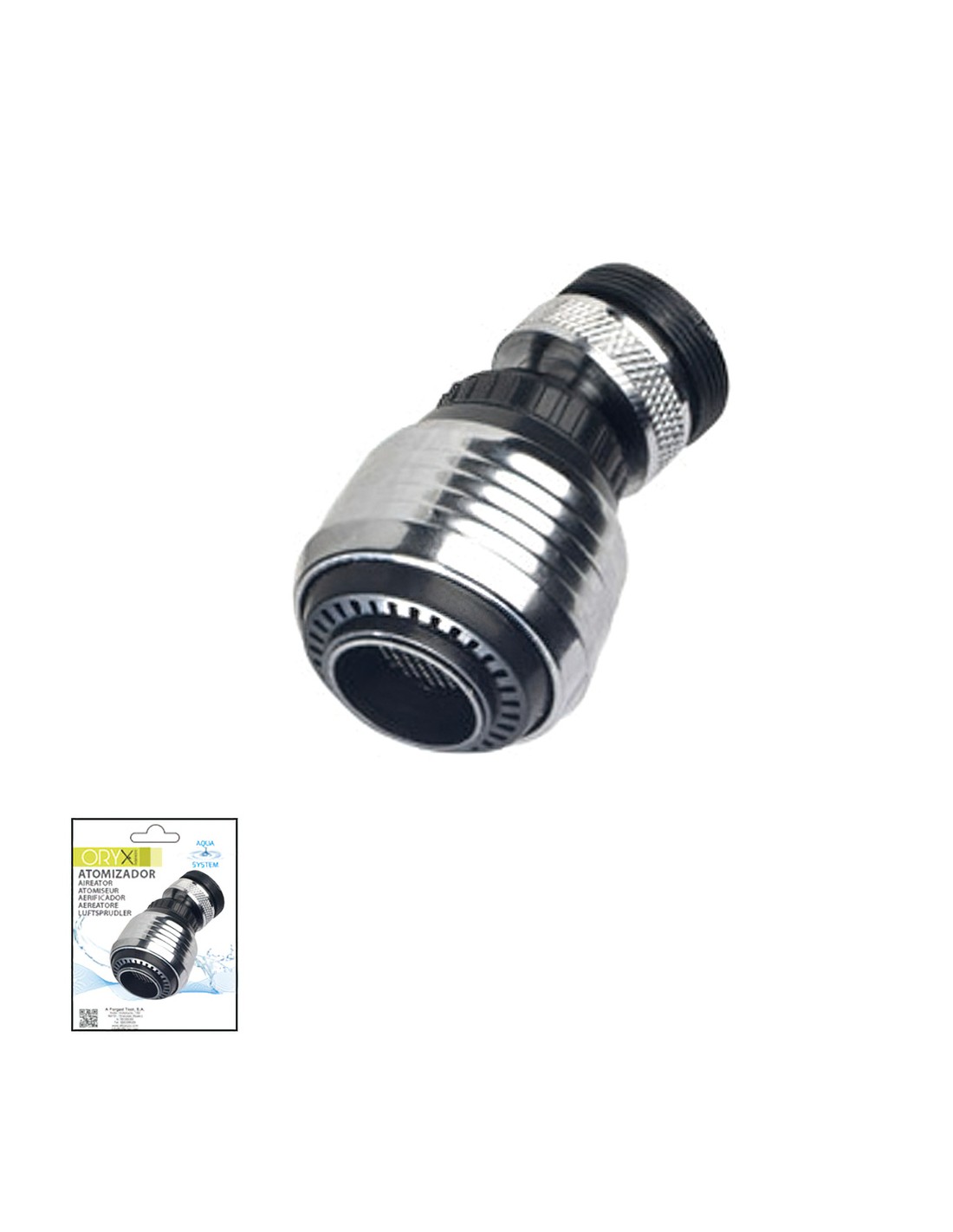 Atomizador economizador con rotula con adaptador macho-hembra cromo. - Atomizador aireador. - Economizador de agua. - Con rótula cromada y rosca. - Con adaptador macho y hembra.