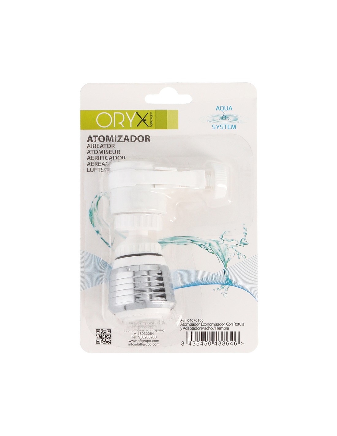 Atomizador economizador con rotula con adaptador macho-hembra. - Atomizador aireador. - Economizador de agua. - Con rótula cromada. - Fijación de tornillo. - Con adaptador macho y hembra.