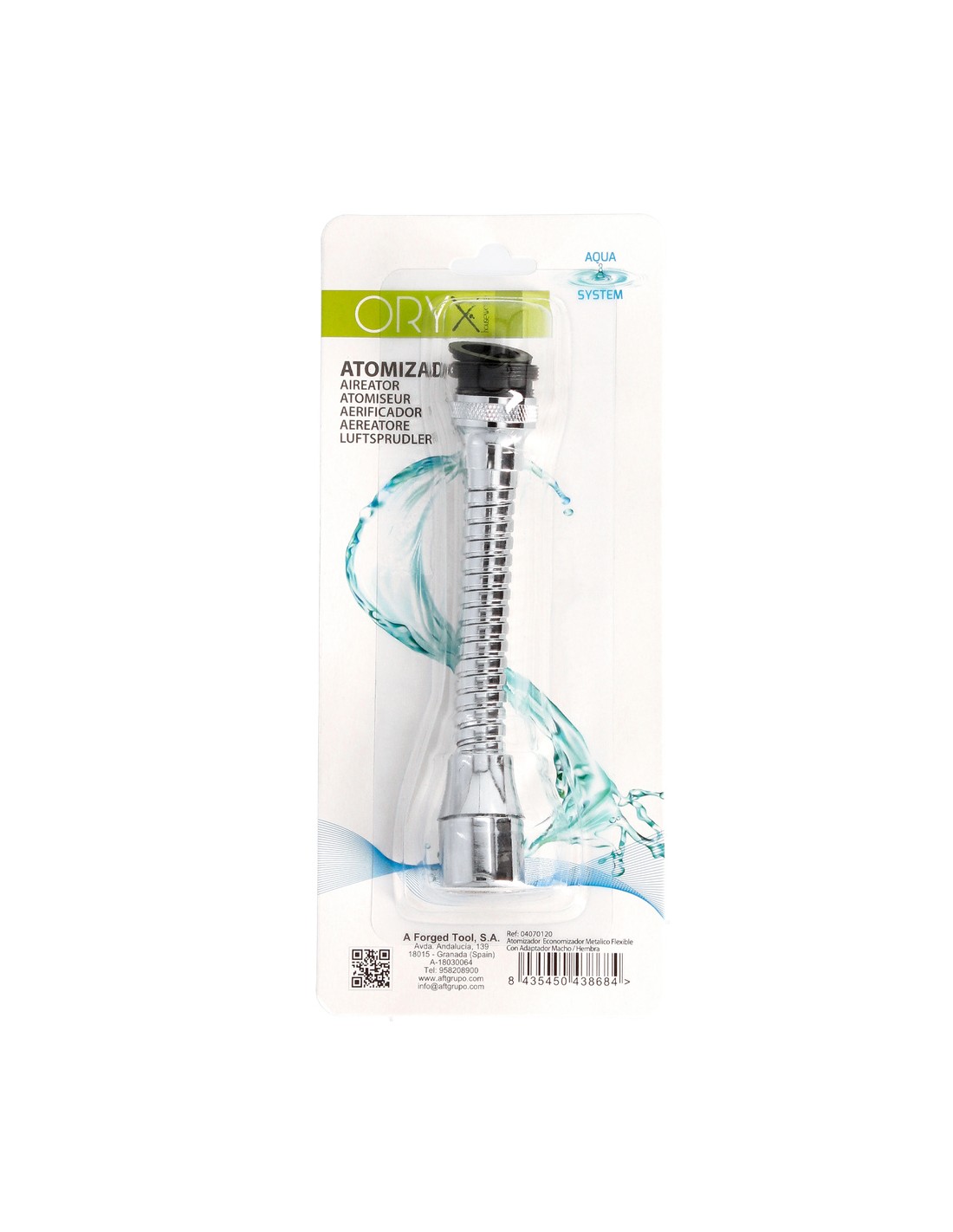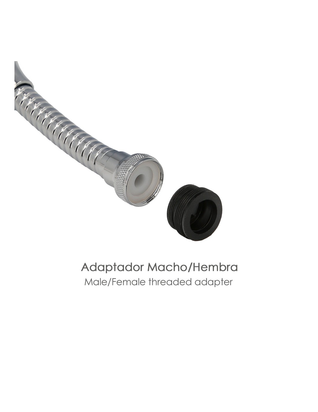 Atomizador economizador metalico flexible con adaptador macho-hembra.