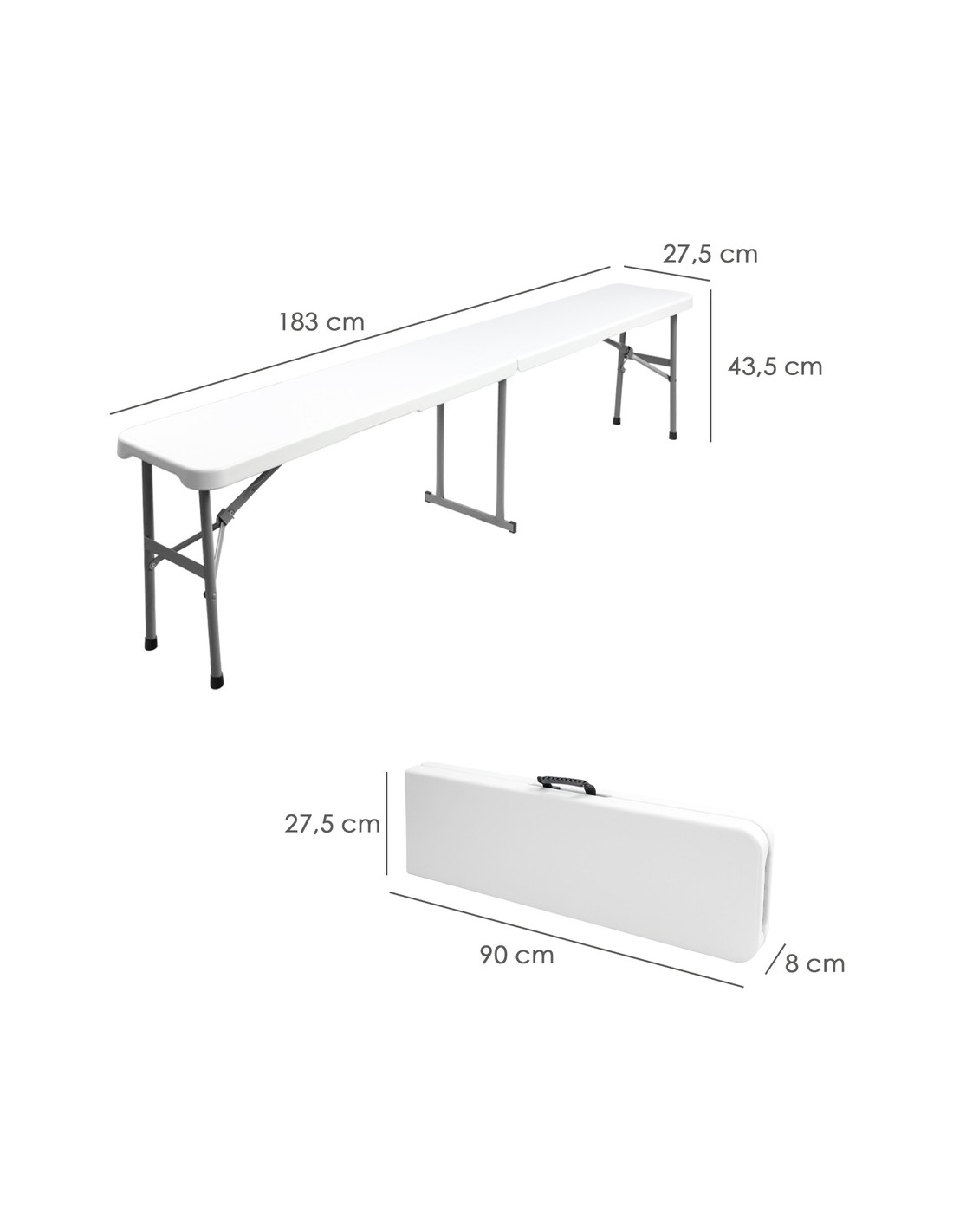 Banco Plegable Multifuncional, Portatil, Resistente,Multiusos 183x28x44 cm. Color Blanco