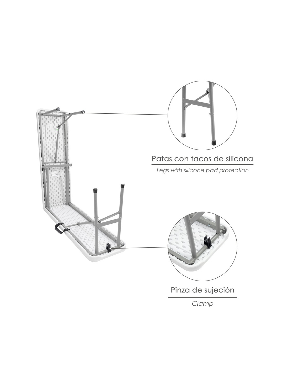 - Totalmente plegable; una vez plegado ocupa muy poco espacio.