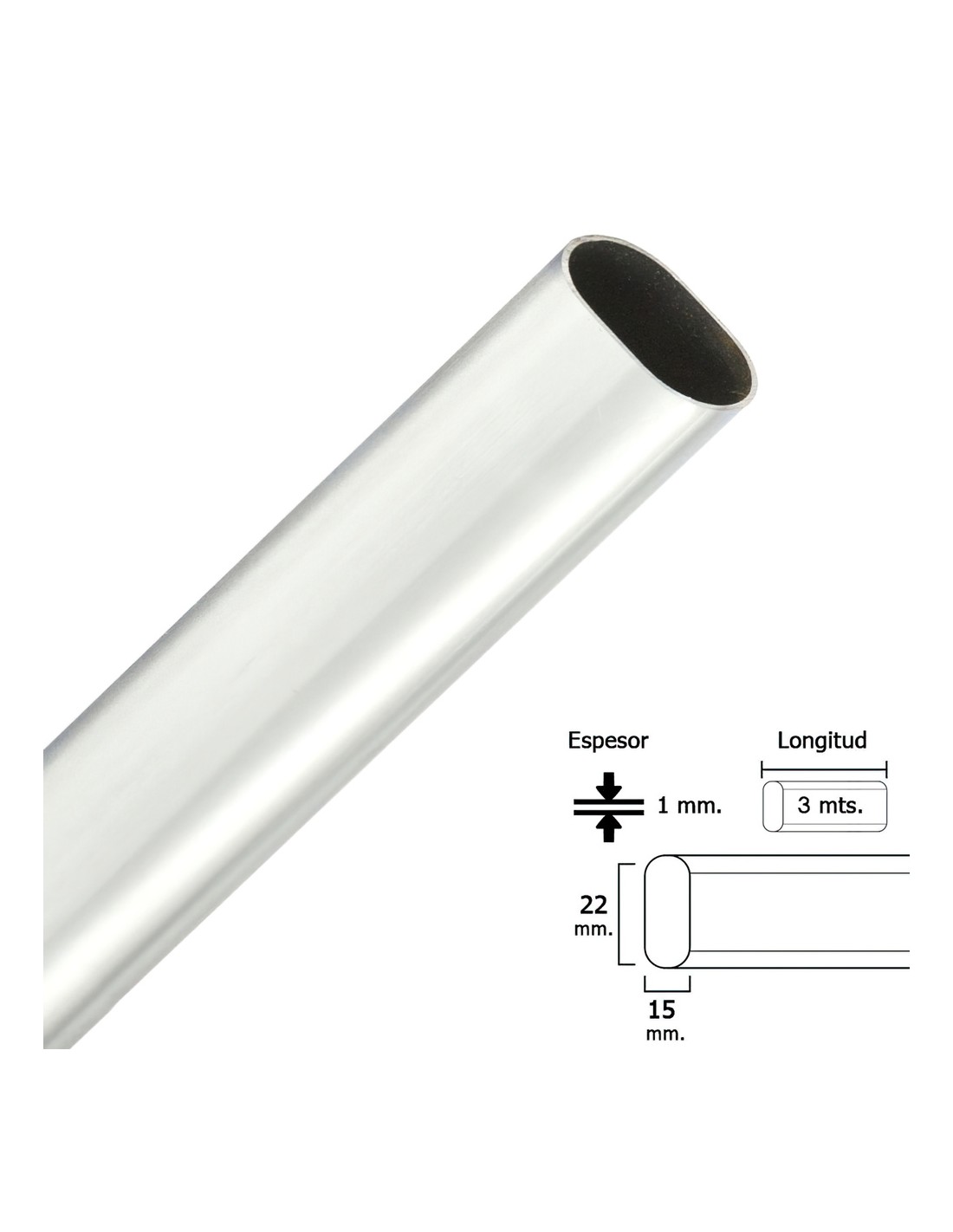 Tubo / barra stor cromado ovalado - Medida: 15x22 mm. - Barra 3,0 metros. - Usos: armarios, taquillas, zapatero, barra colgador ropa , barra cortina , barra contrapeso en estores, etc. - Ideal para el montaje de cortinas.