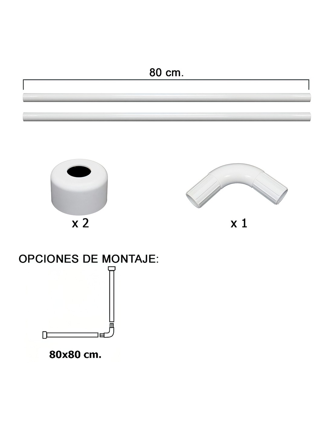 Barra Para Cortina Ducha Universal Aluminio Blanco 80x80 cm.
