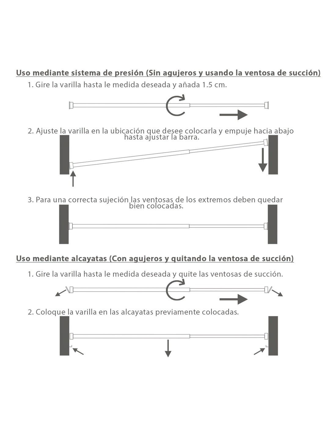 Barra Visillo Extensible 36/64 cm. con Muelle Presion, Soportes y Ventosas (2 Piezas)