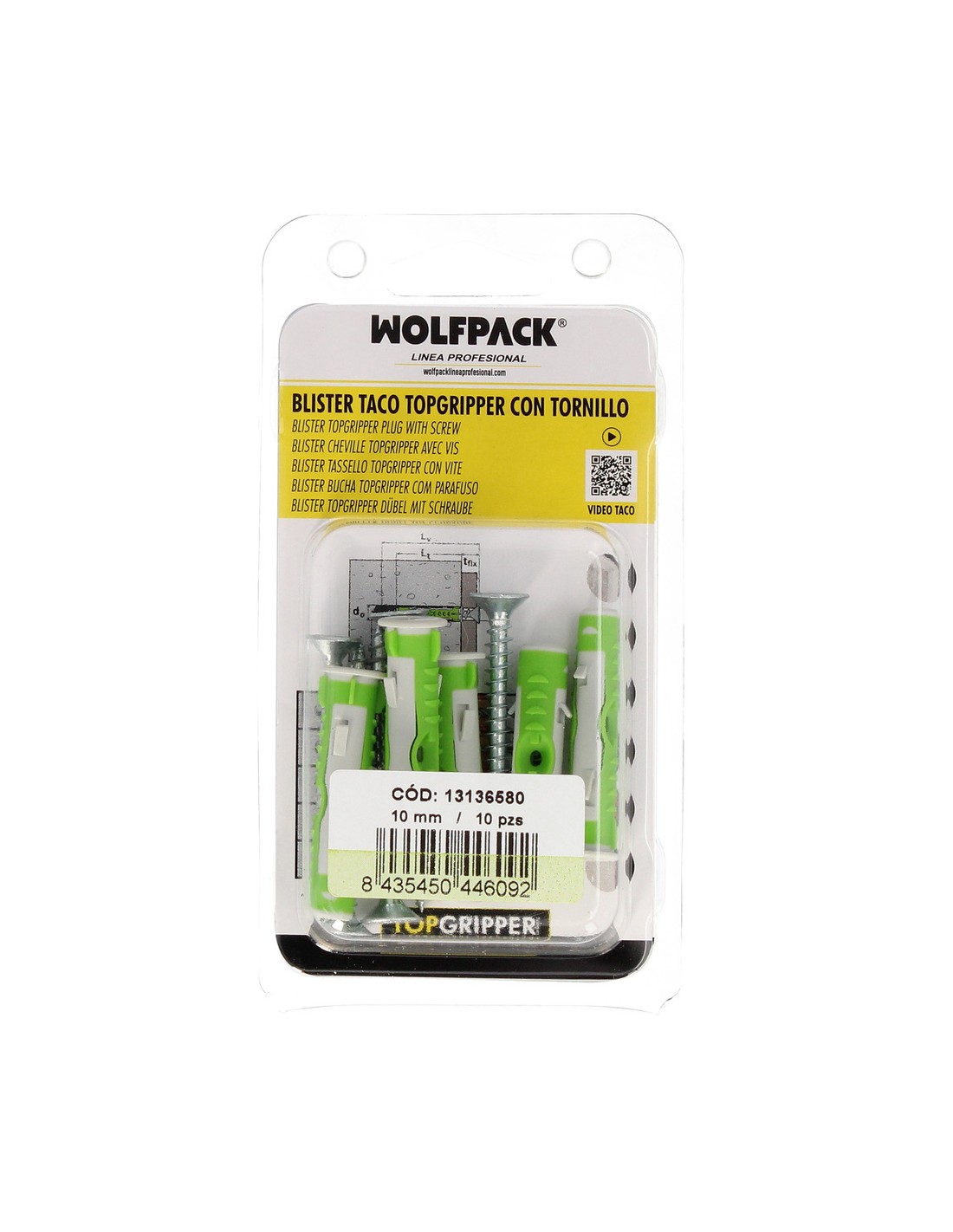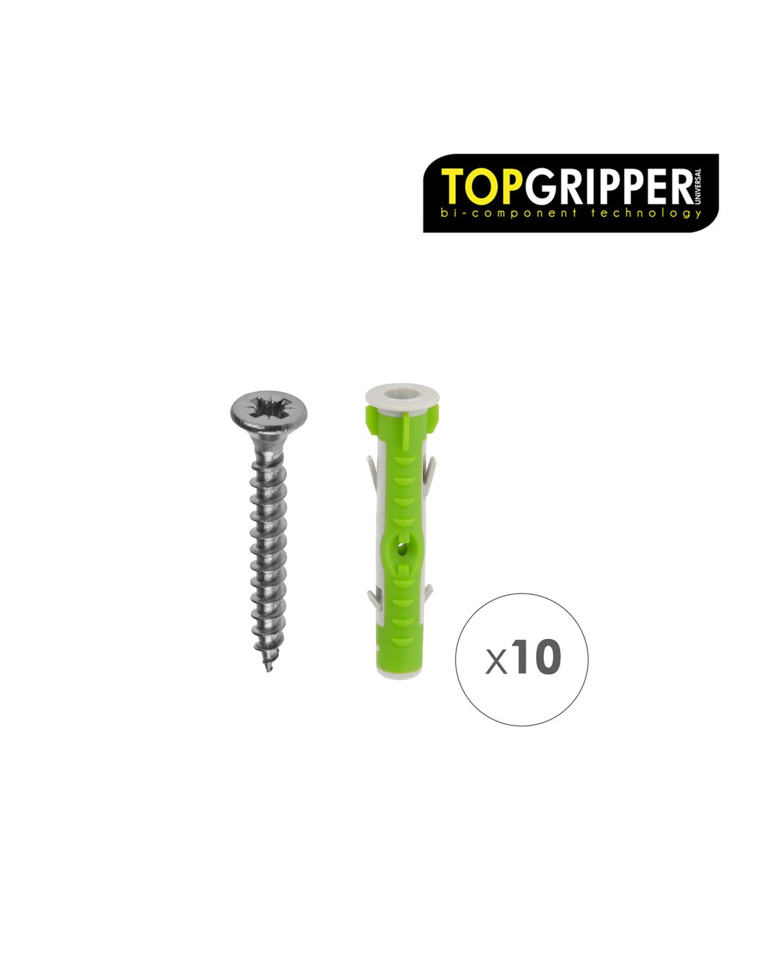 Blister Tacos Topgripper Bimaterial Con Tornillos Ø 10 mm. 10 Piezas Taco Anclaje Universal, Taco Hormigon, Taco Pladur