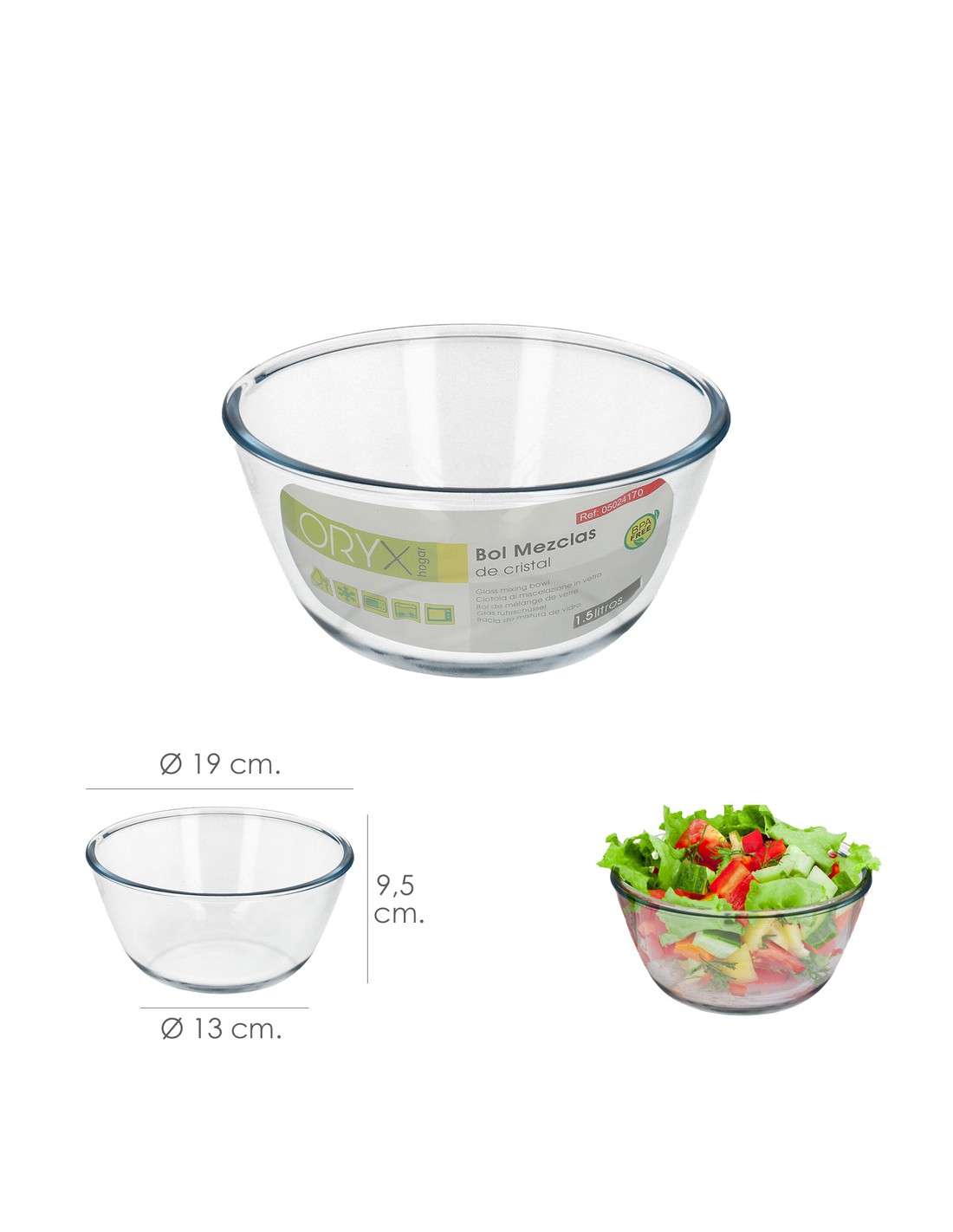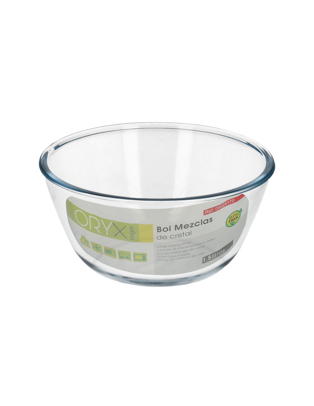 Bol De Cristal, Ideal Para Mezclas. 1.5 Litros. Libre BPA, Cristal De Borosilicato.Ensaladas, Postres, Cocina, Resposteria