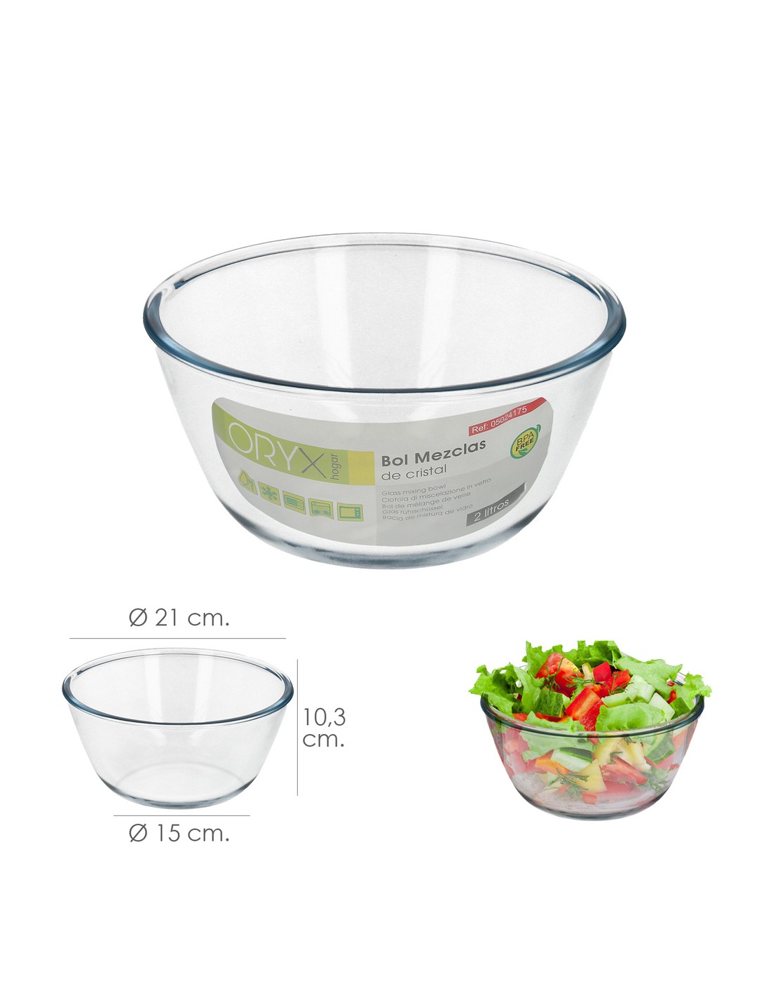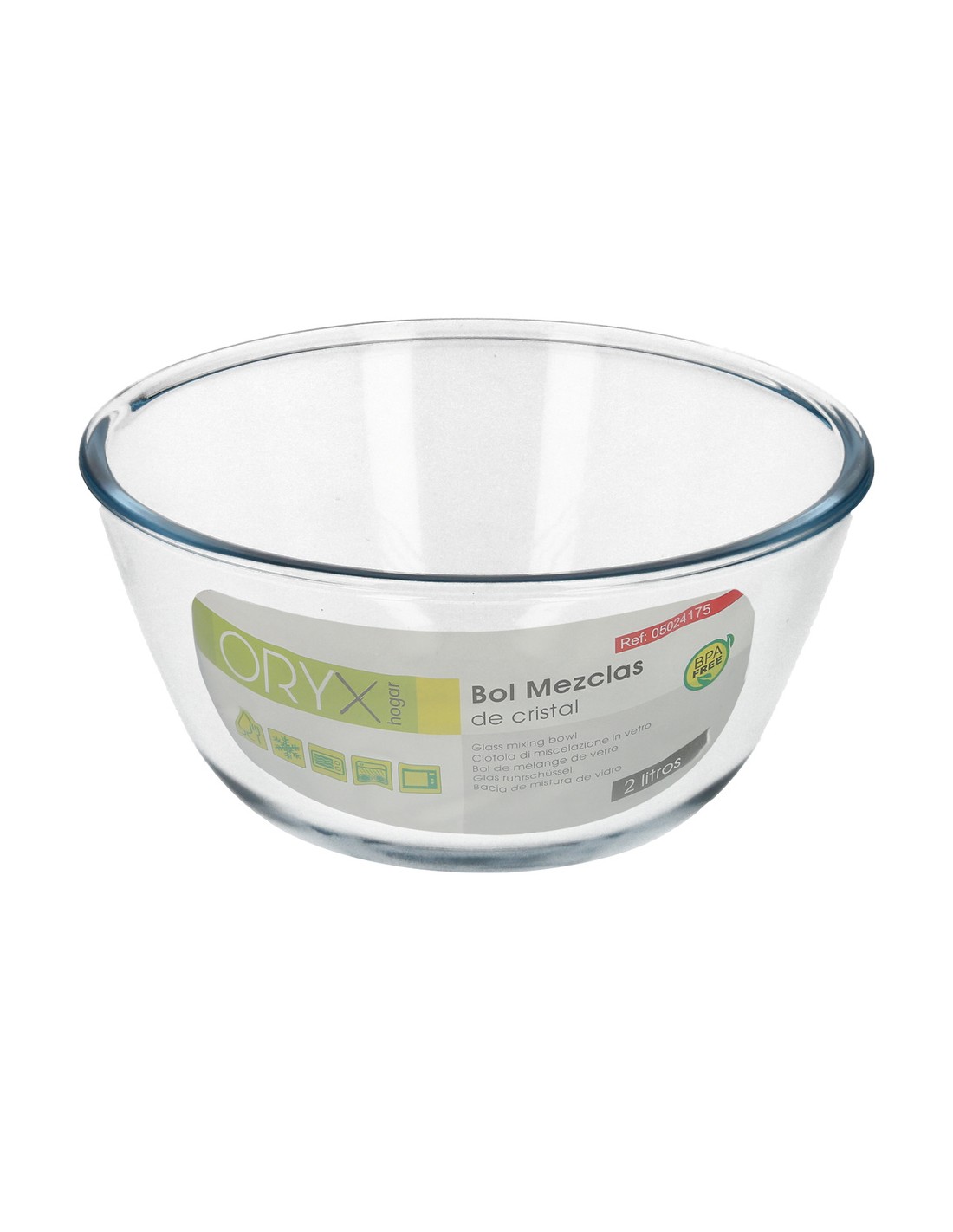 Bol De Cristal, Ideal Para Mezclas. 2.0 Litros. Libre BPA, Cristal De Borosilicato.Ensaladas, Postres, Cocina, Resposteria