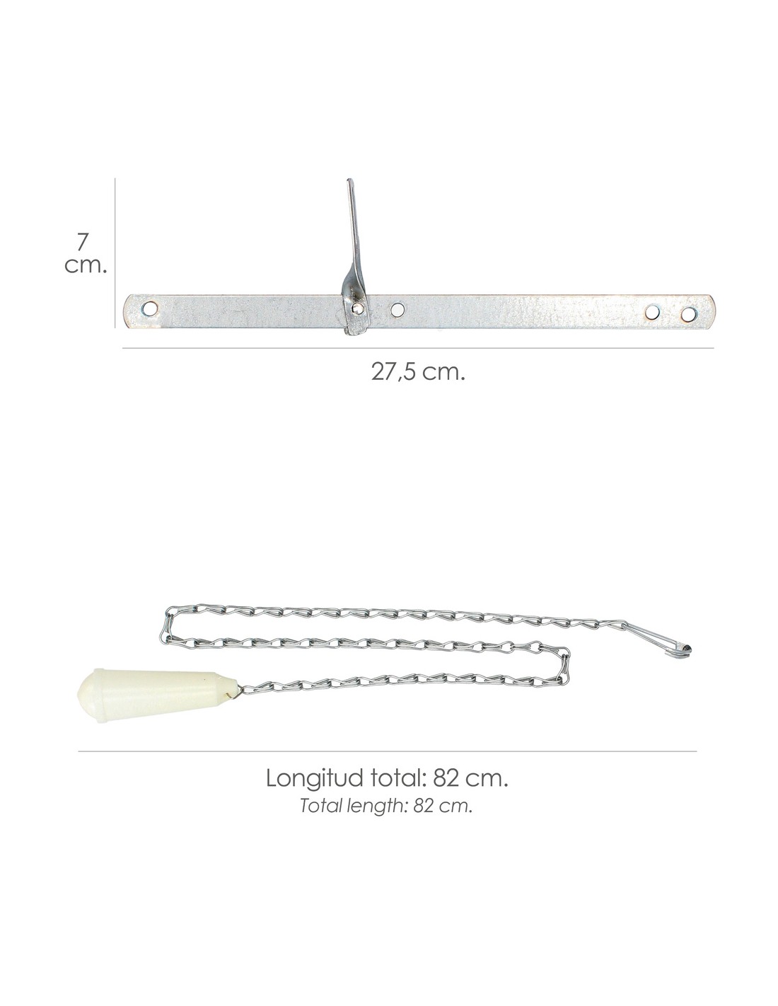 - Tirador cisterna: cadena que se utiliza para descargar el agua de de la cisterna del WC.