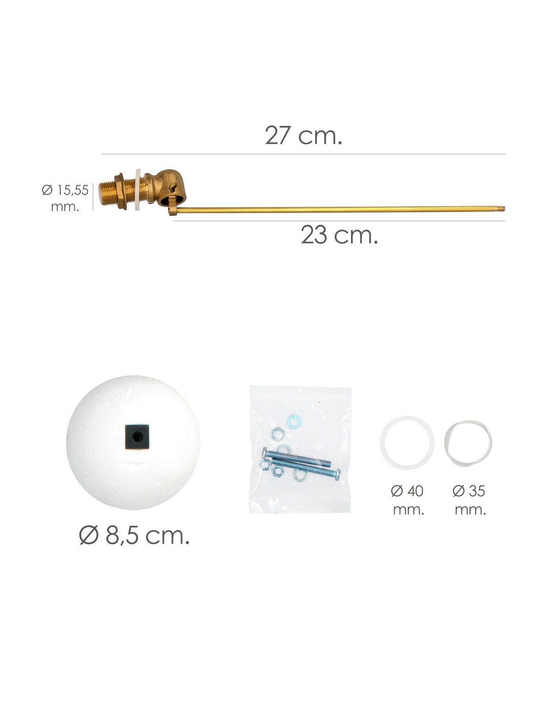 - Boya flotador: Una vez que el agua está al nivel necesario corta el llenado de la cisterna.