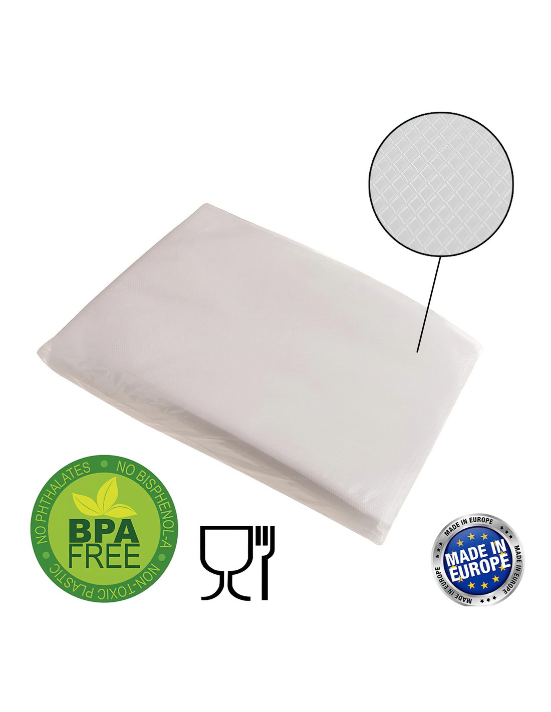 - El diseño multicapa de las bolsas ofrece los requisitos para garantizar un envasado al vacío seguro y duradero para tus alimentos: