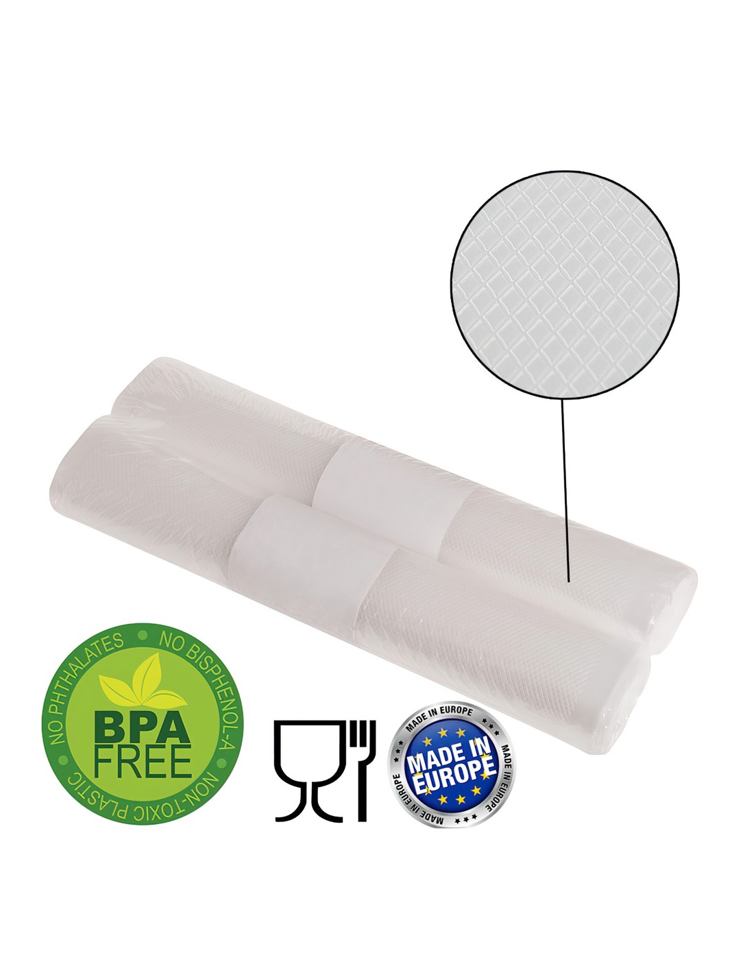 - El diseño multicapa de los rollos ofrece los requisitos para garantizar un envasado al vacío seguro y duradero para sus alimentos:
