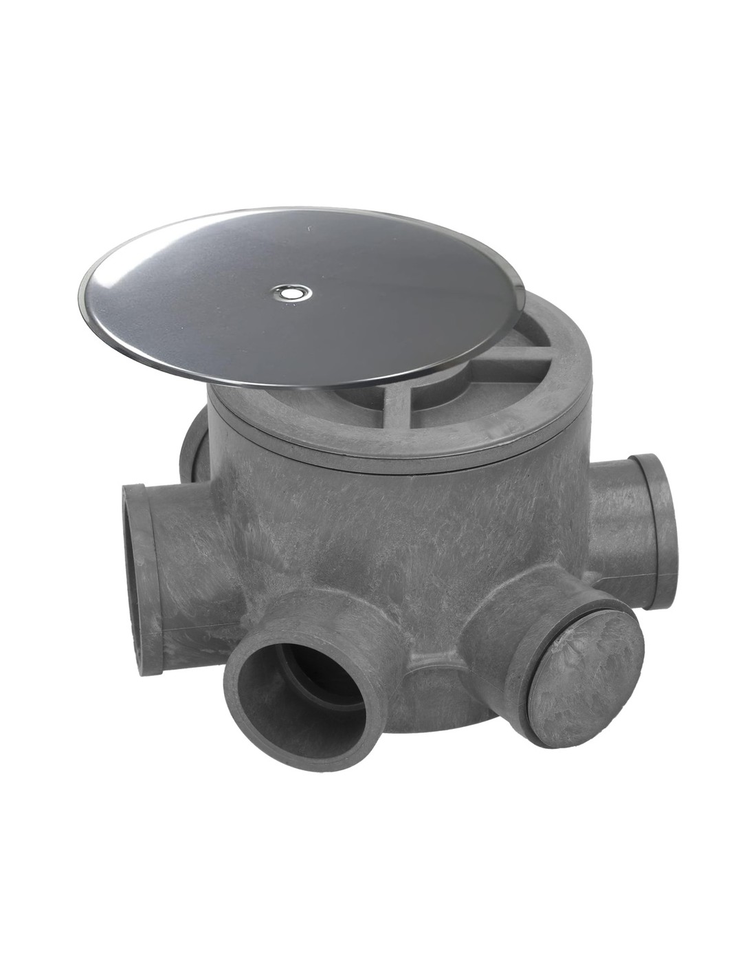 Bote Sifónico PVC Tuberias Ø 110 mm. Salidas Ø 50 y 40 mm. Altura 105 mm.
